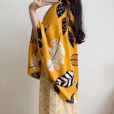 Bufanda de gasa con estampado de coco de estilo europeo y americano, nueva bufanda larga de alta gama con protección solar y seda sintética que combina con todo.