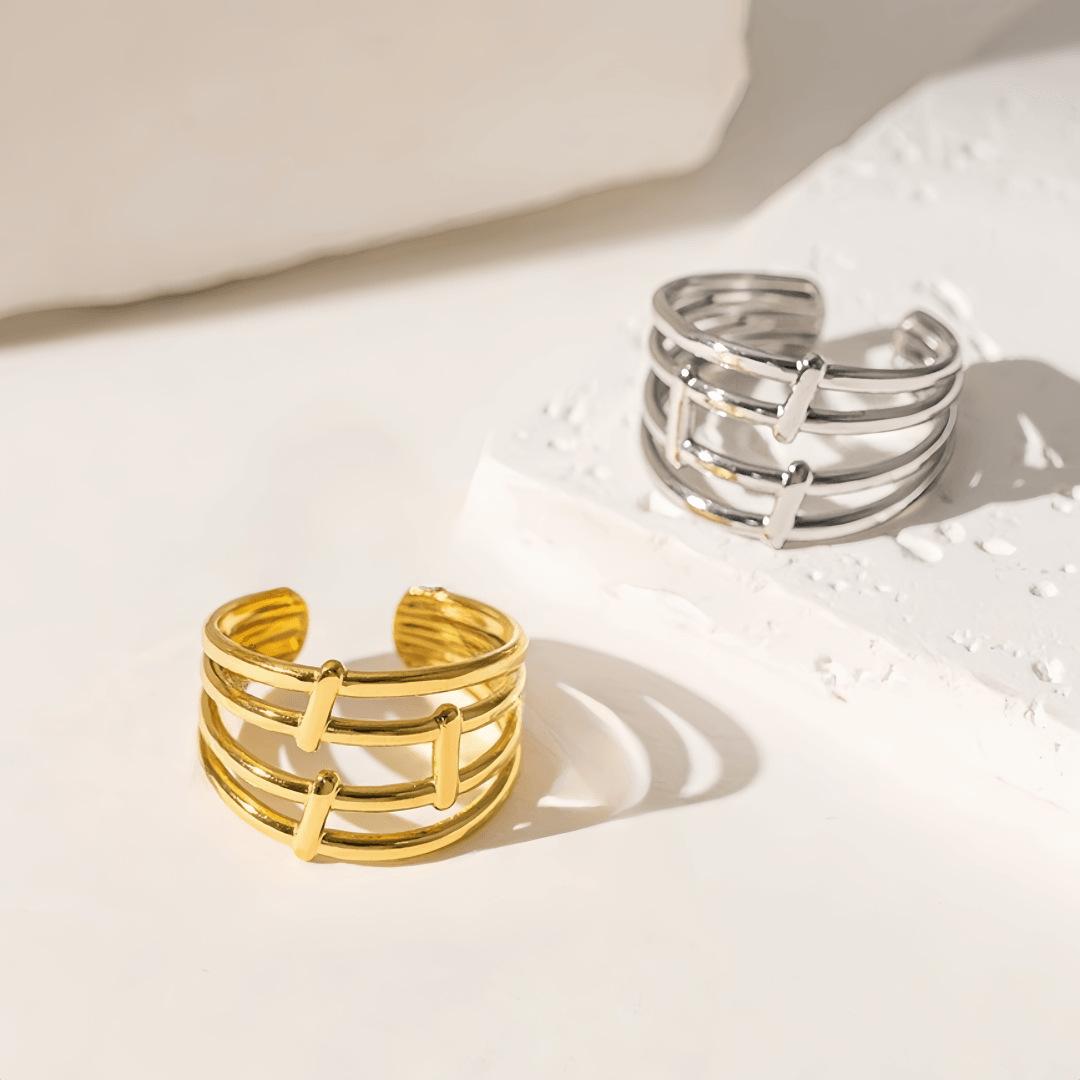 Anillo geométrico europeo y americano de acero de titanio para mujer con retención de color, diseño minimalista, anillo simple de moda, anillo de acero inoxidable al por mayor