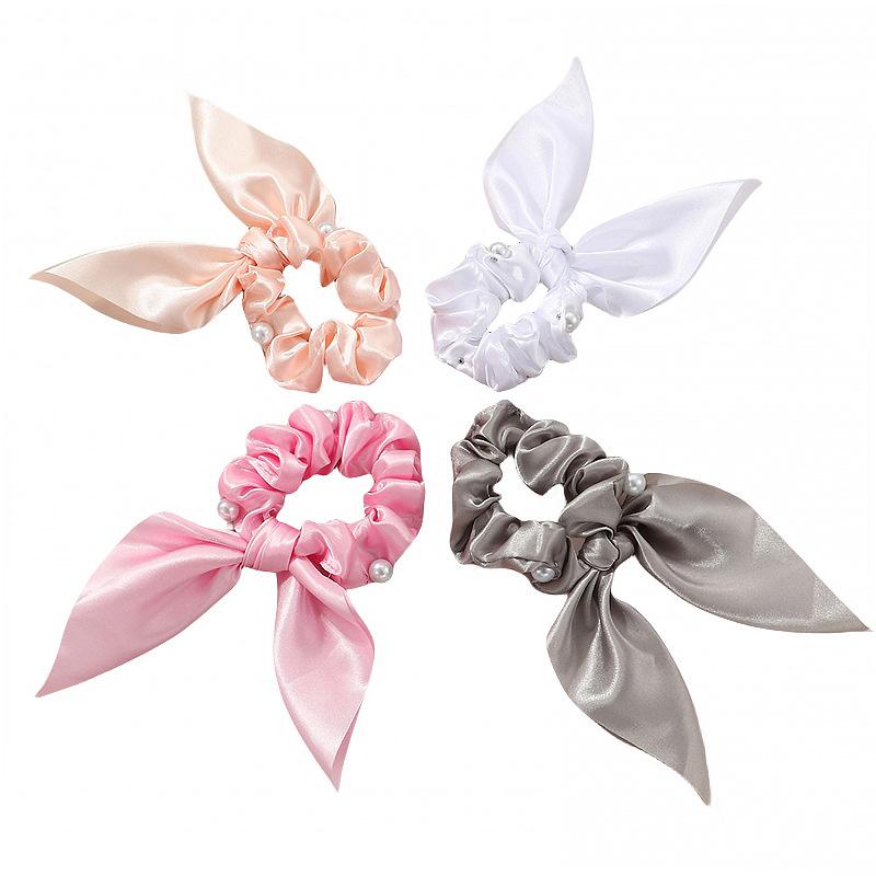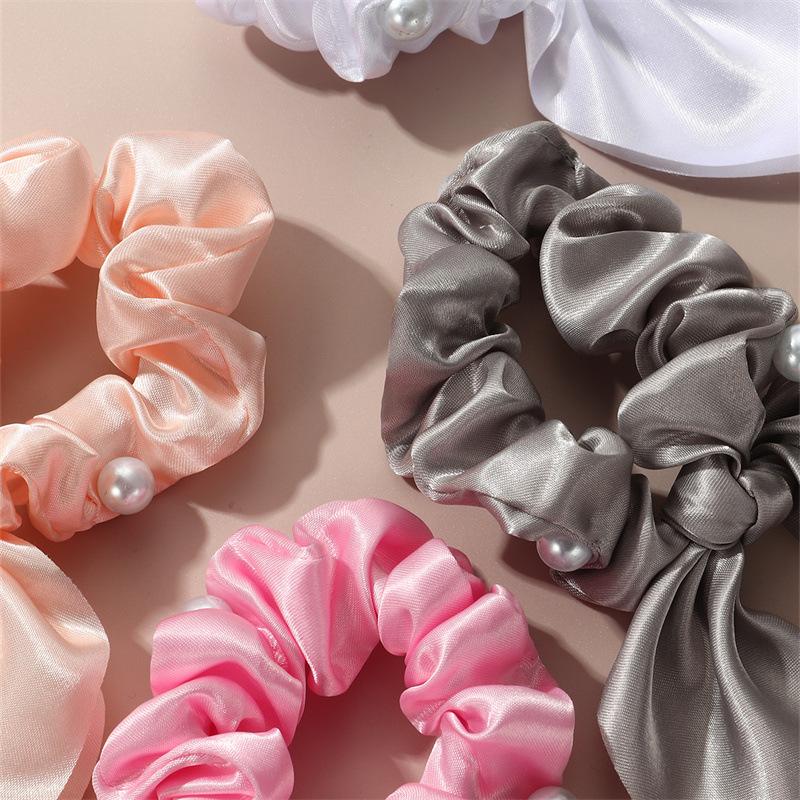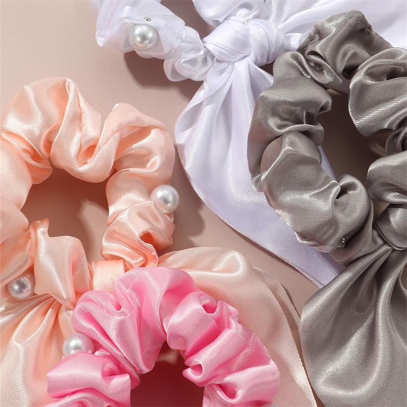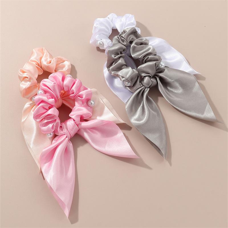 Nuevos accesorios para el cabello transfronterizos, cinta de nudo cruzado simple con cuentas de color sólido de seda, lindo traje de anillo de intestino grueso para niños