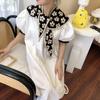 | |  | | Traje original de otoño e invierno con rayas de lunares franceses, pequeño pañuelo de seda largo, chal de seda, pañuelo de seda multifuncional. | | | |