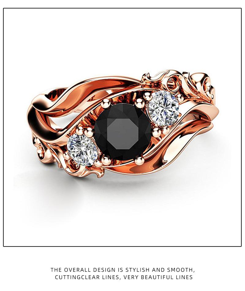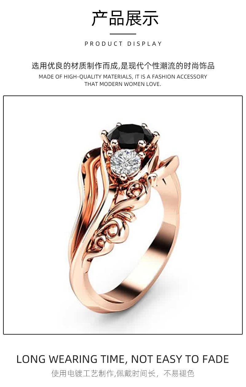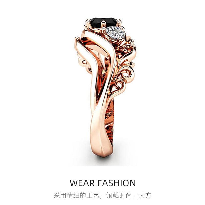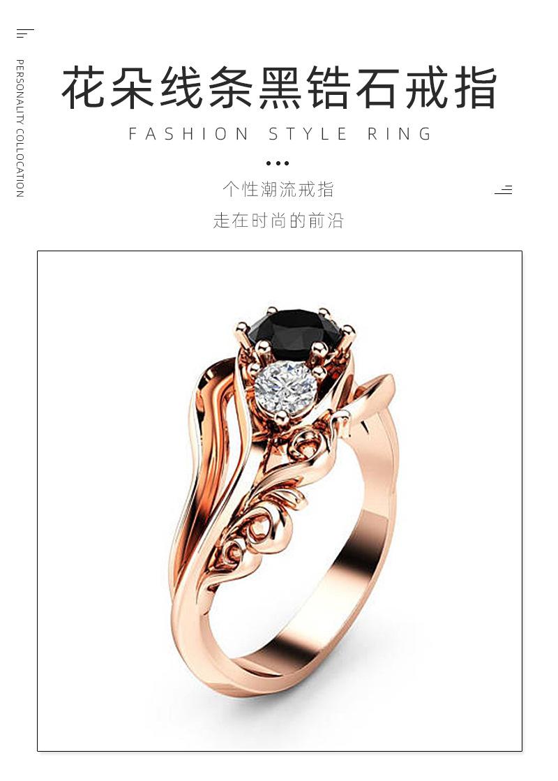 Anillo de circonita negra con línea de flores transfronterizas, anillo de diamantes popular de moda, pulsera de cena de lujo ligera retro de moda