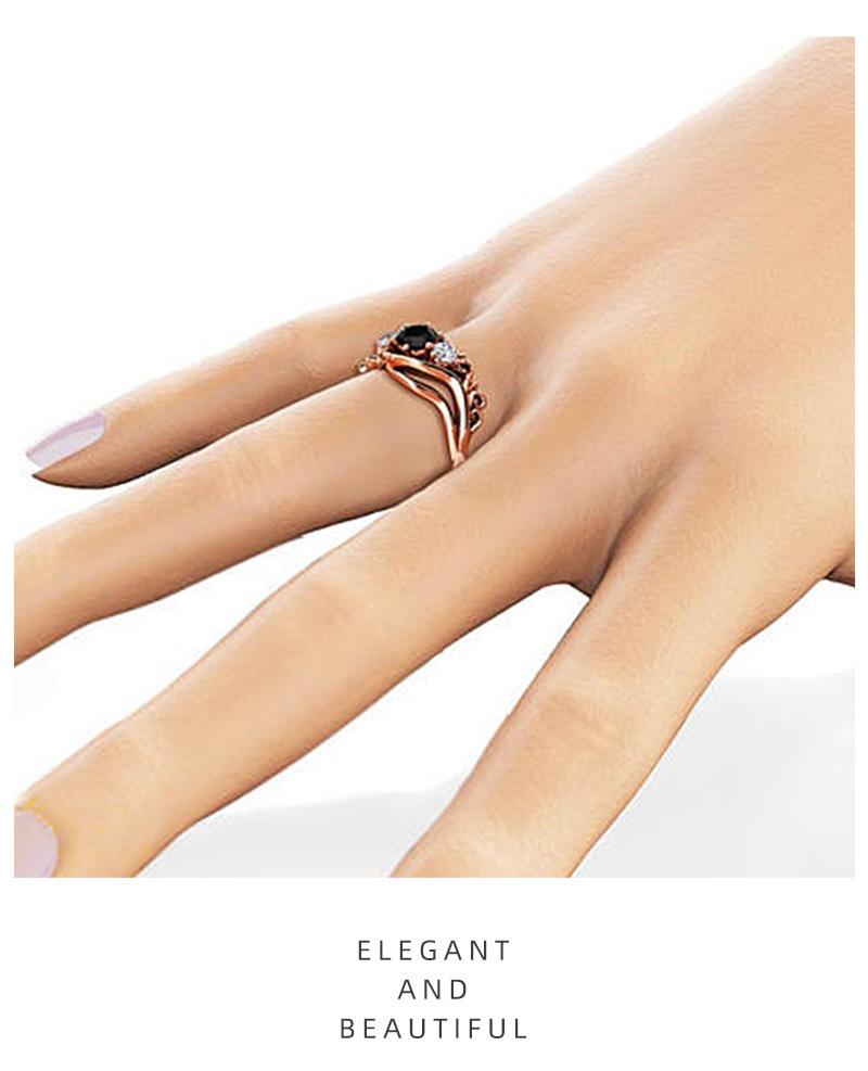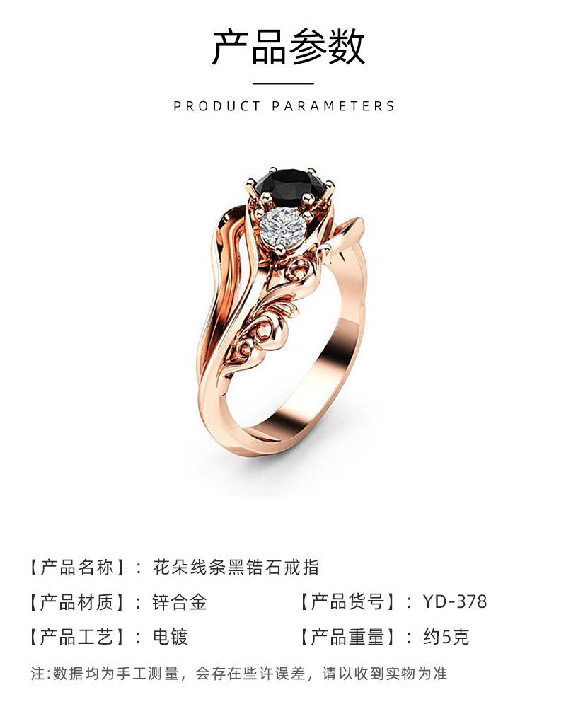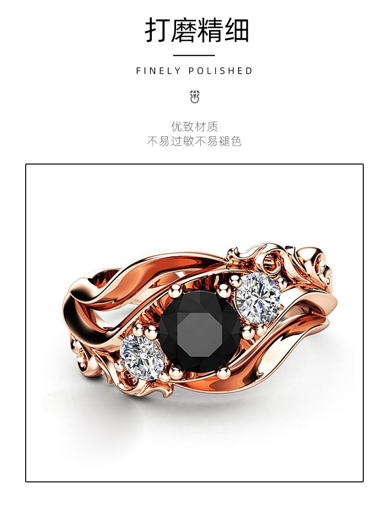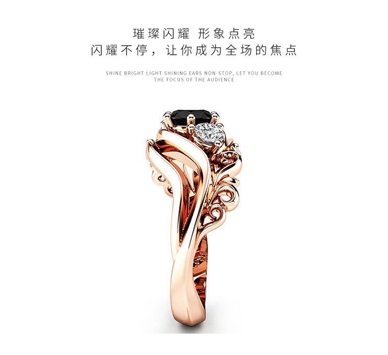 Anillo de circonita negra con línea de flores transfronterizas, anillo de diamantes popular de moda, pulsera de cena de lujo ligera retro de moda