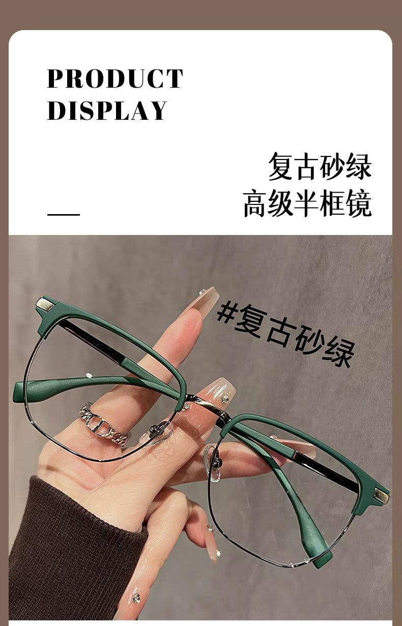 Nuevas y populares gafas de media montura con línea de cejas retro para miopía, gafas cuadradas lisas con protección contra la luz azul.