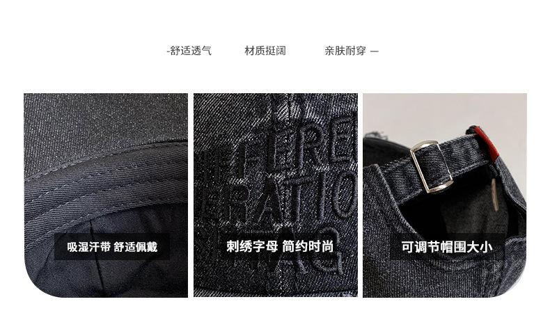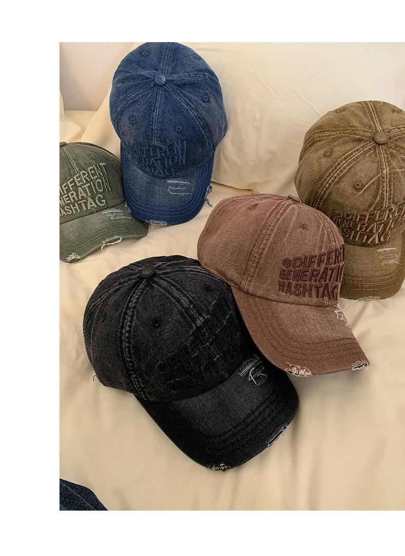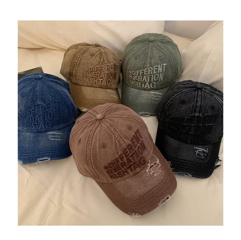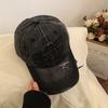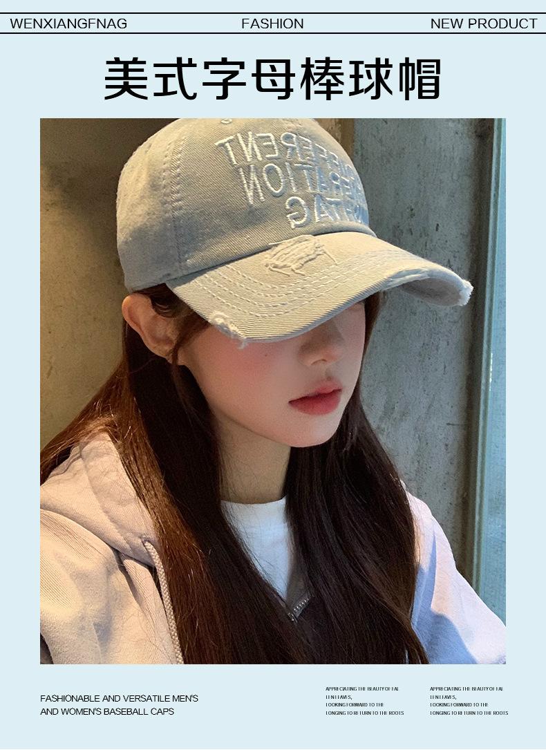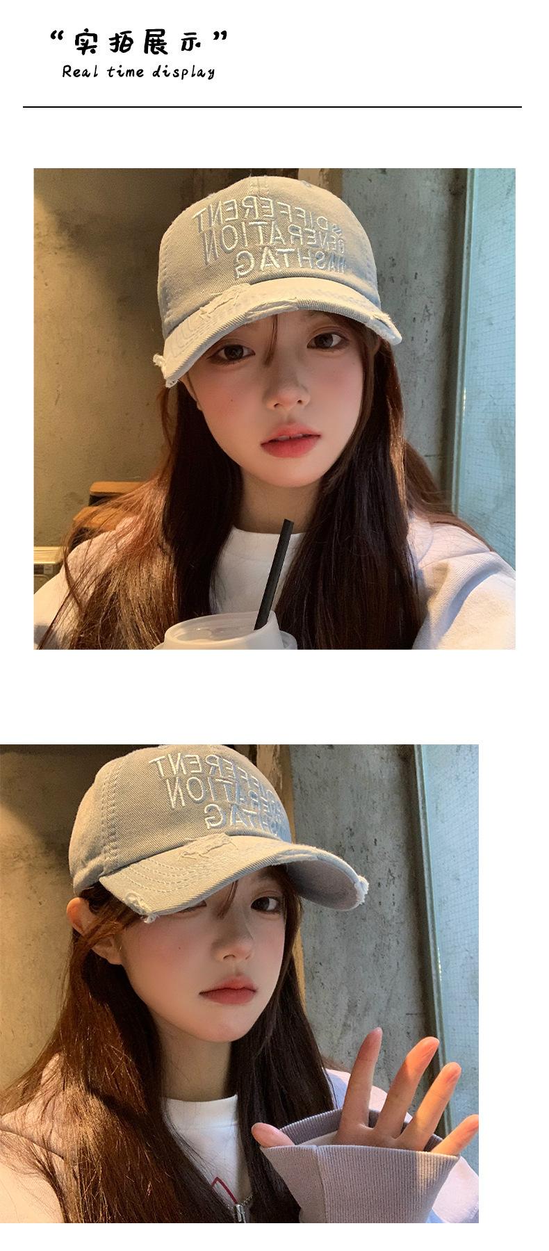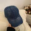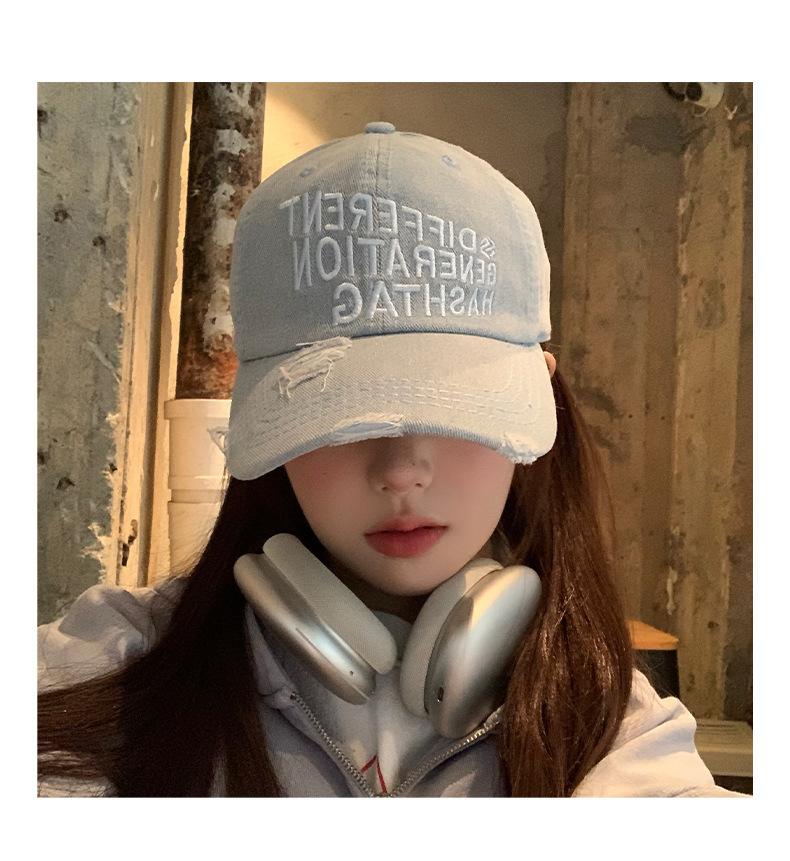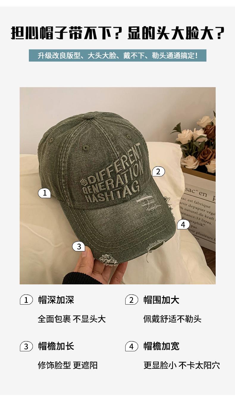 Bordado americano gorra de pico profundizada extragrande gorra de béisbol de mezclilla rasgada para mujer ala ancha circunferencia de cabeza grande sombrero que hace que la cara se vea pequeña