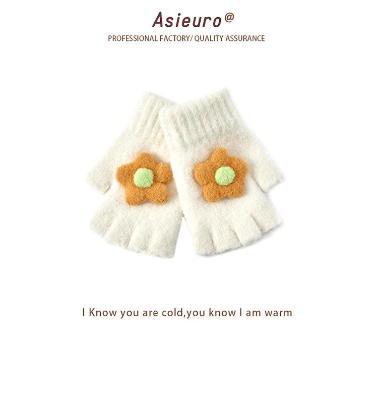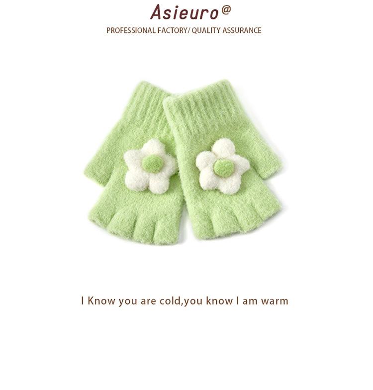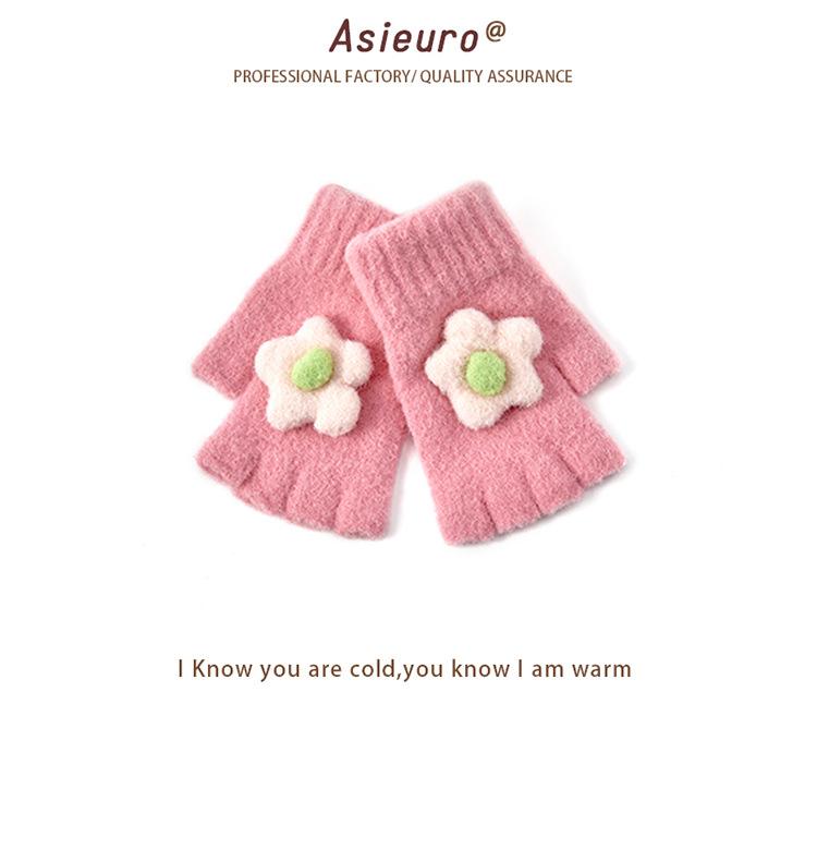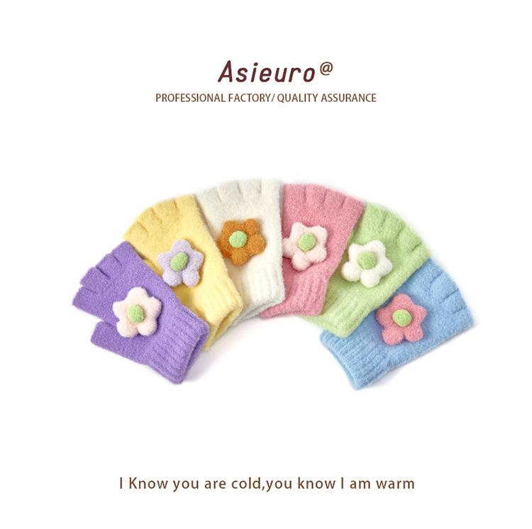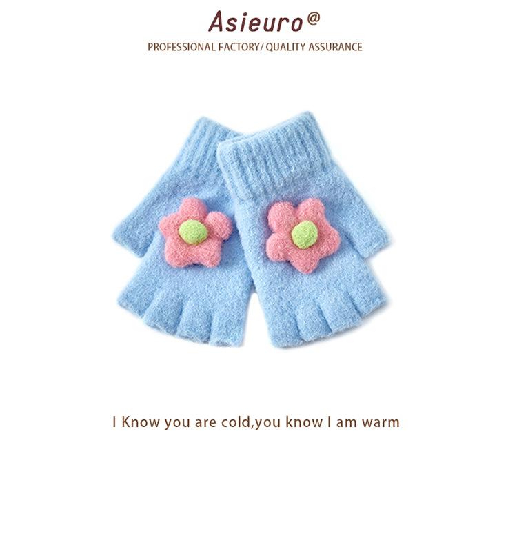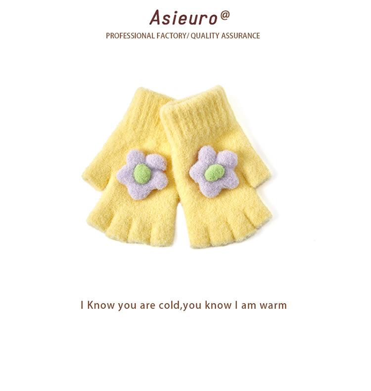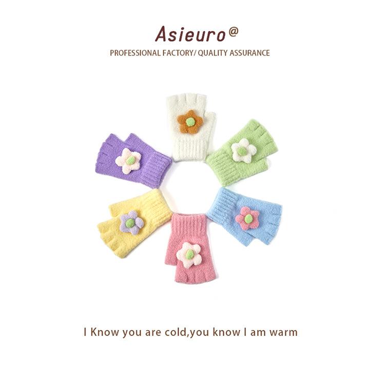 Guantes de invierno para niños con forro polar grueso, cálidos y de punto de lana para niñas, bonitos guantes para dedos abiertos, para escribir con los dedos, para tareas escolares, al por mayor