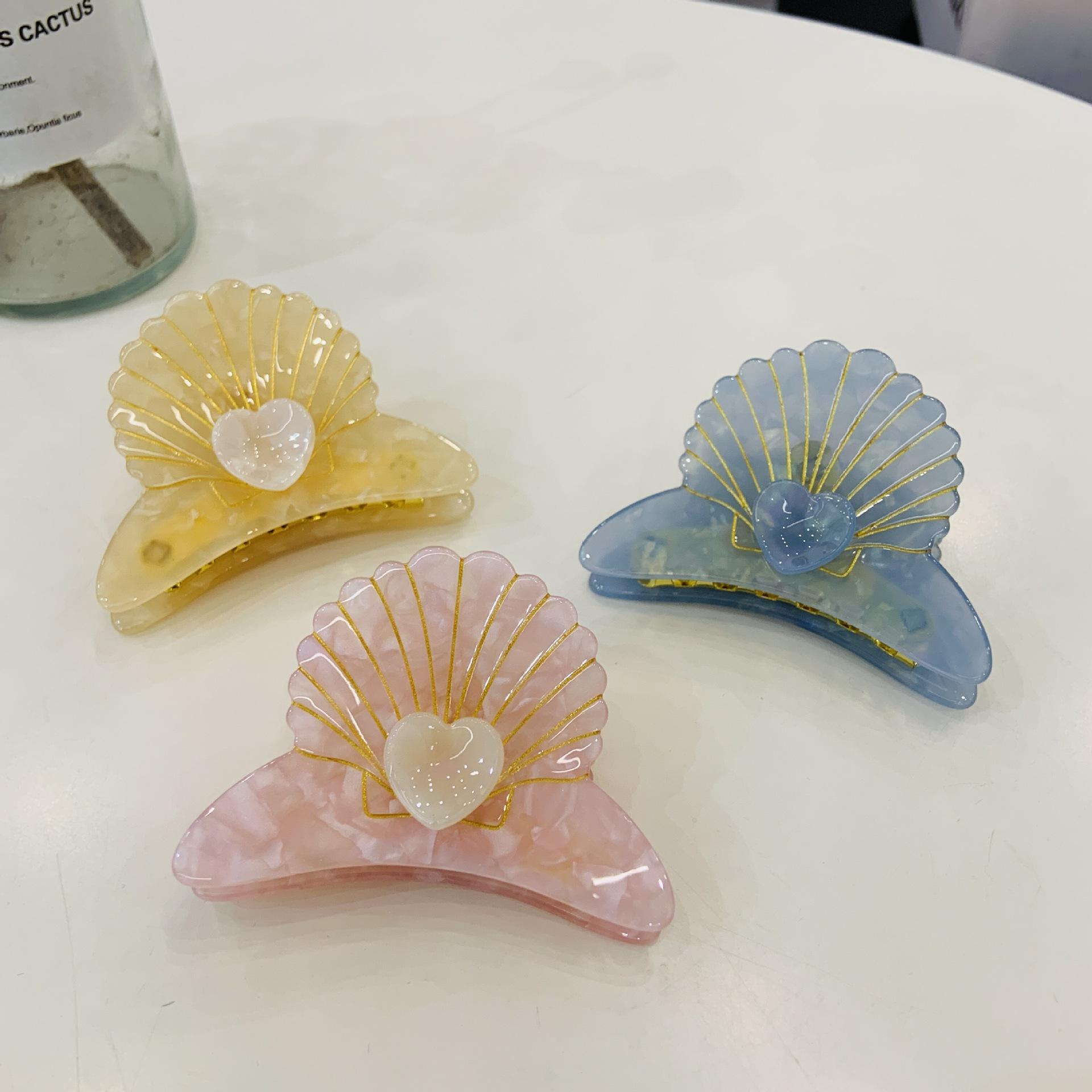 Nuevo Clip Garra de Ácido Acético Amor Concha Rosa Océano Pasador Simple Chica Dulce Creativo Clip Trasero Accesorios para el Cabello