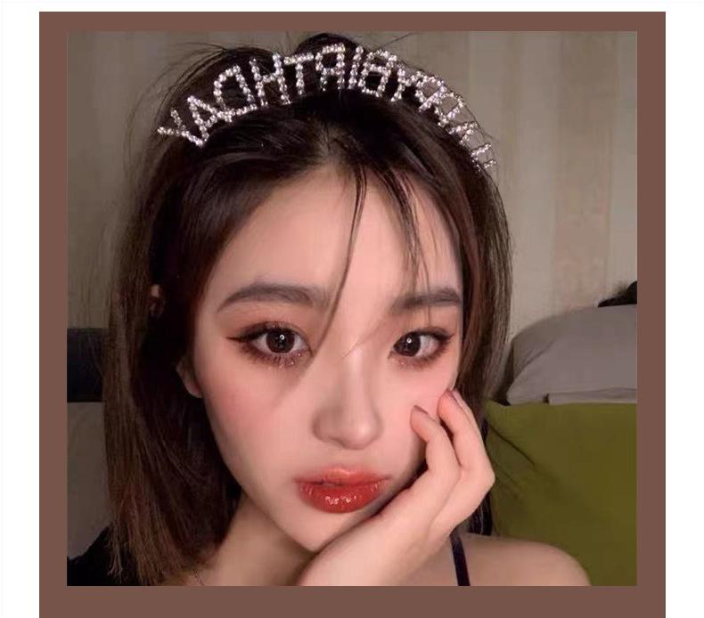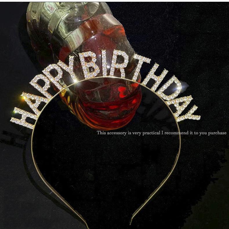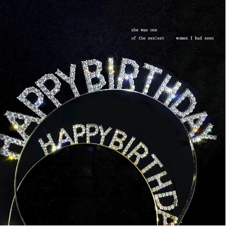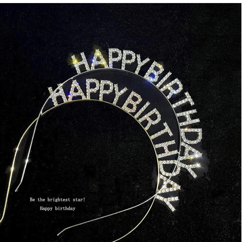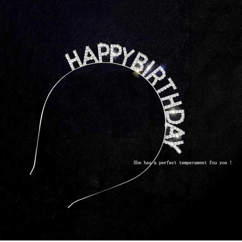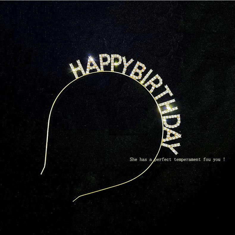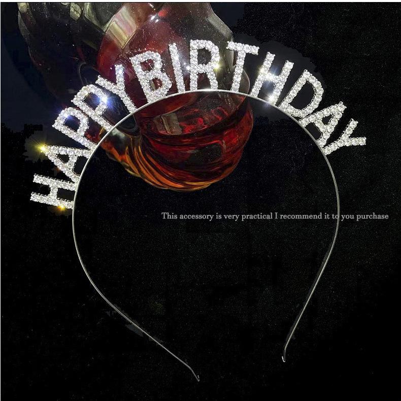 Feliz cumpleaños Letras de Pedrería Diadema de Cumpleaños Diadema Horquilla para el Cabello de Niña Celebridad de Internet Fiesta Tocado Accesorios para el Cabello