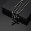 Collar cruzado para hombre, estilo hip hop, para chica, con personalidad callejera, cadena de suéter de tres capas con cruz negra, cadena de acero de titanio larga