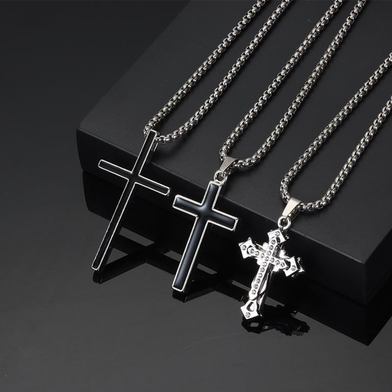Perforated large cross necklace 60cm, Perforated large cross necklace 70cm, Black Oil Cross Necklace 60cm, Bla...