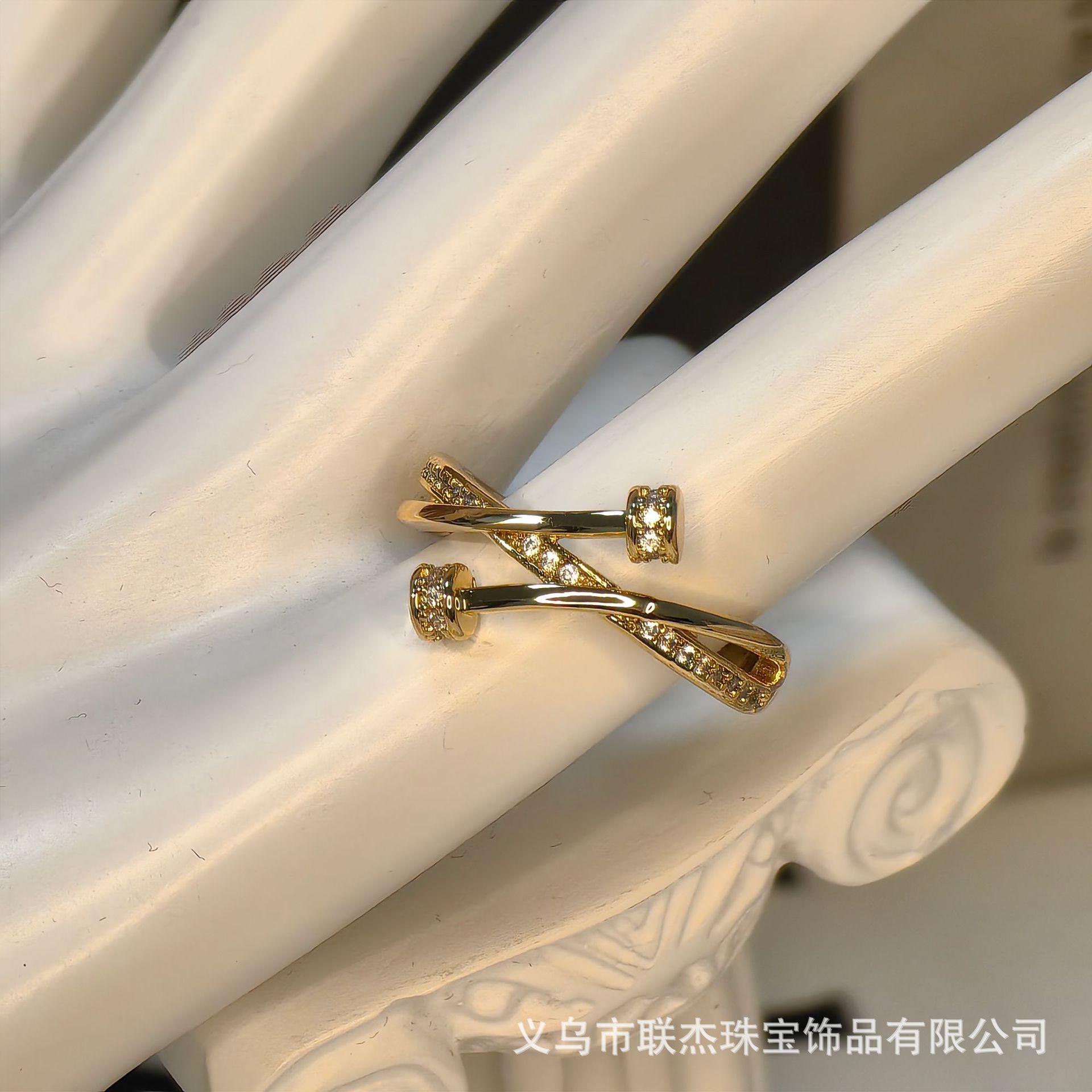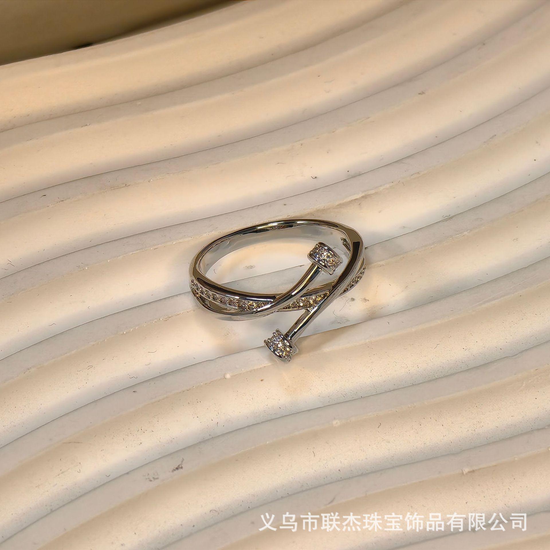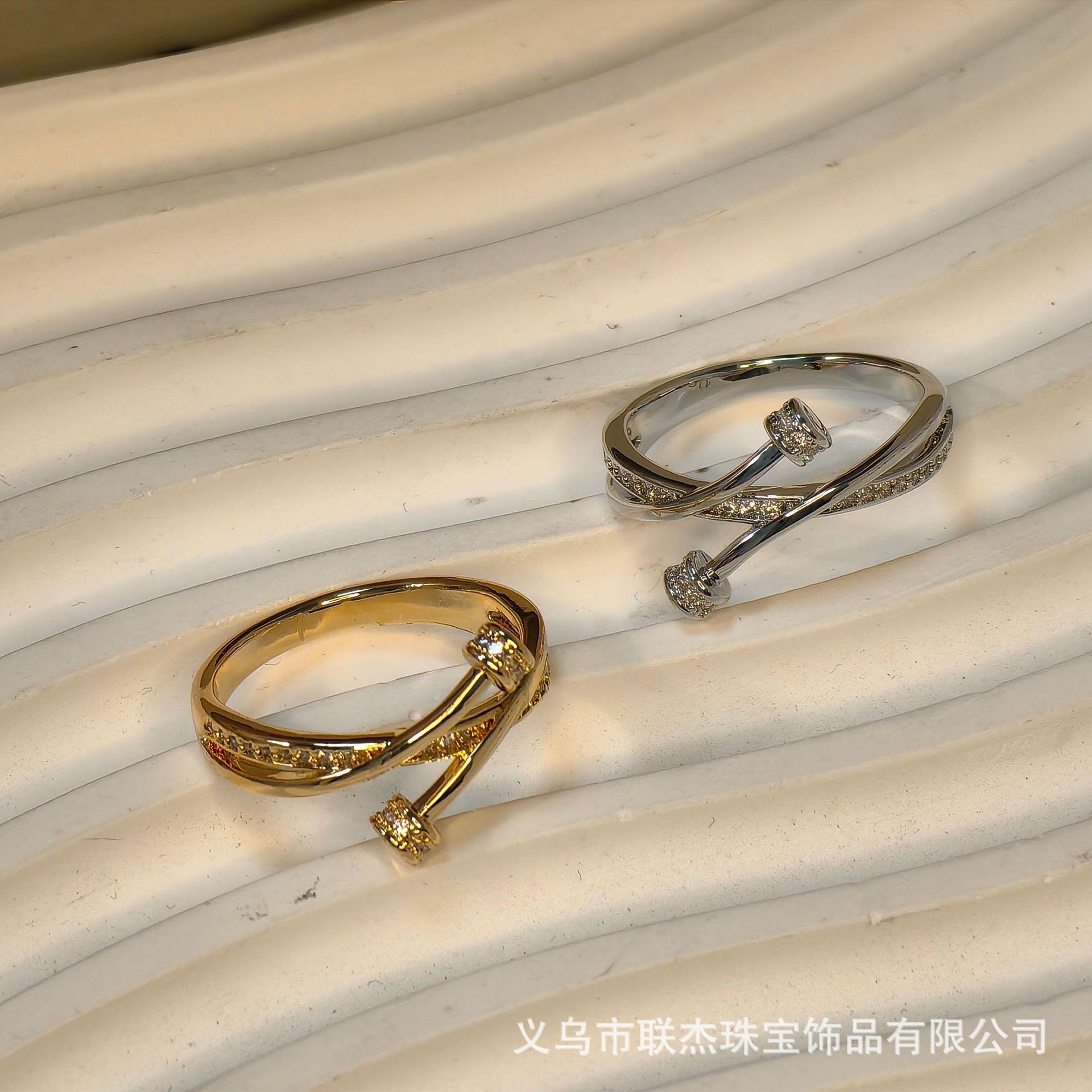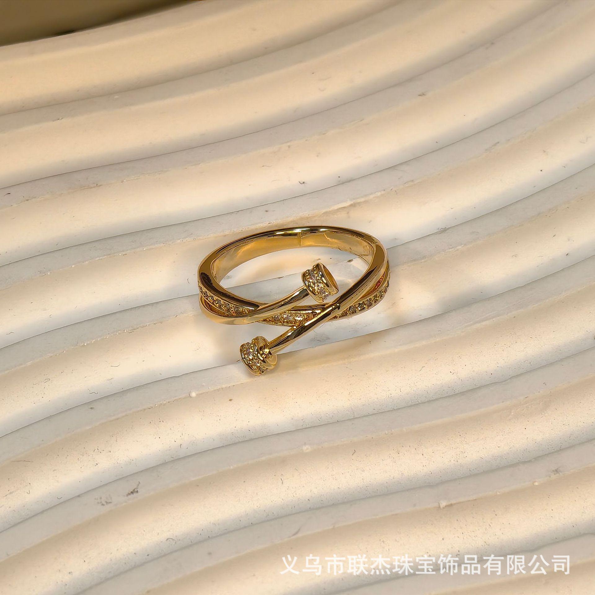 Compra Anillo chapado en oro real con cabeza de clavo de doble circón, estilo europeo y americano, exquisito y simple, estilo explosión al por mayor en Joom.pro