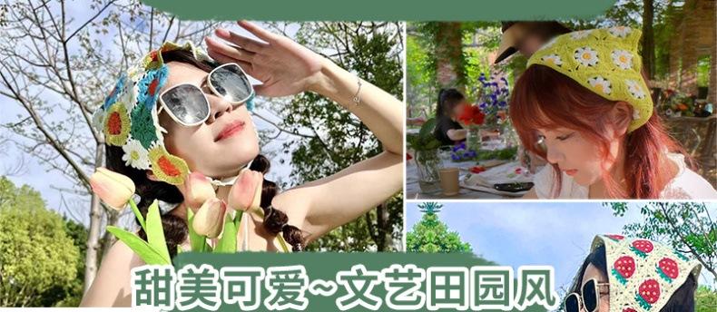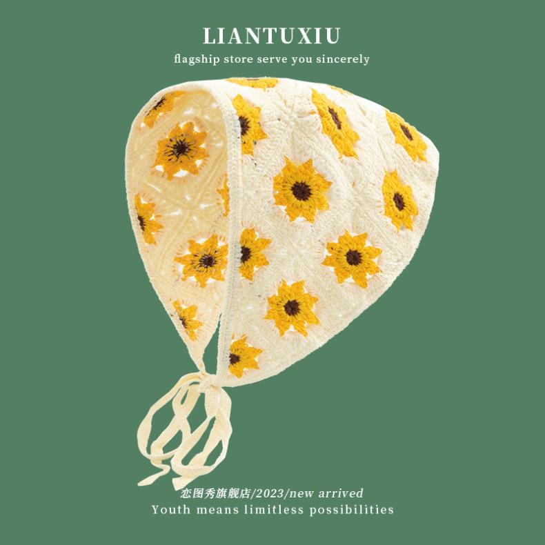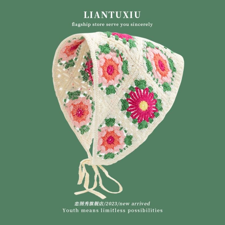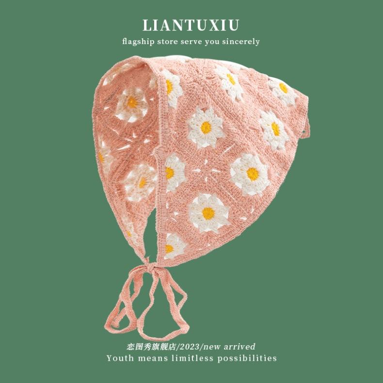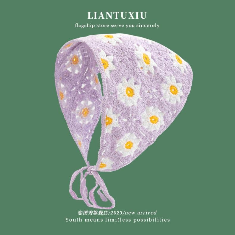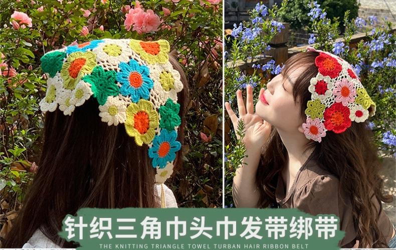 Bufanda Triangular Tejida a Crochet Retro Francés de Primavera y Otoño Estilo Pastoral Dulce y Lindo para Cabeza Spice Girl Adorno para el Cabello Cinturón para el Cabello de Mujer Moda