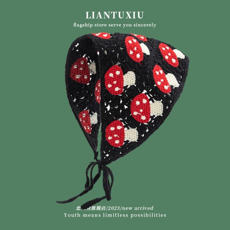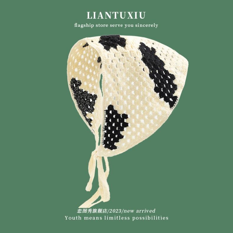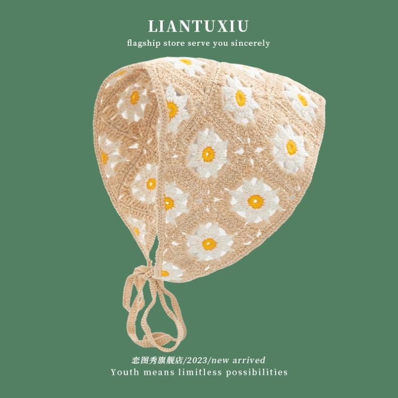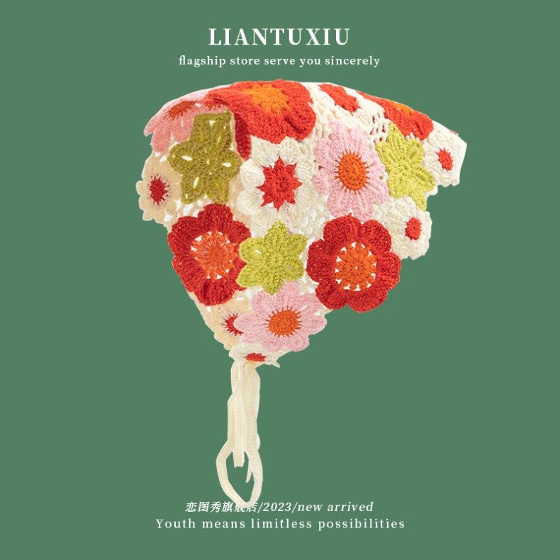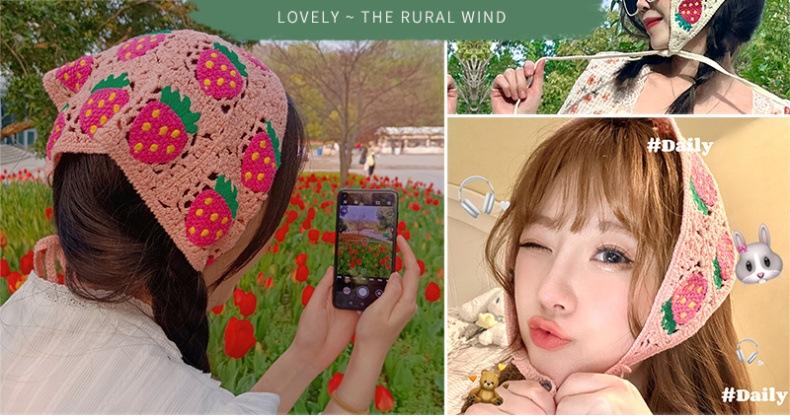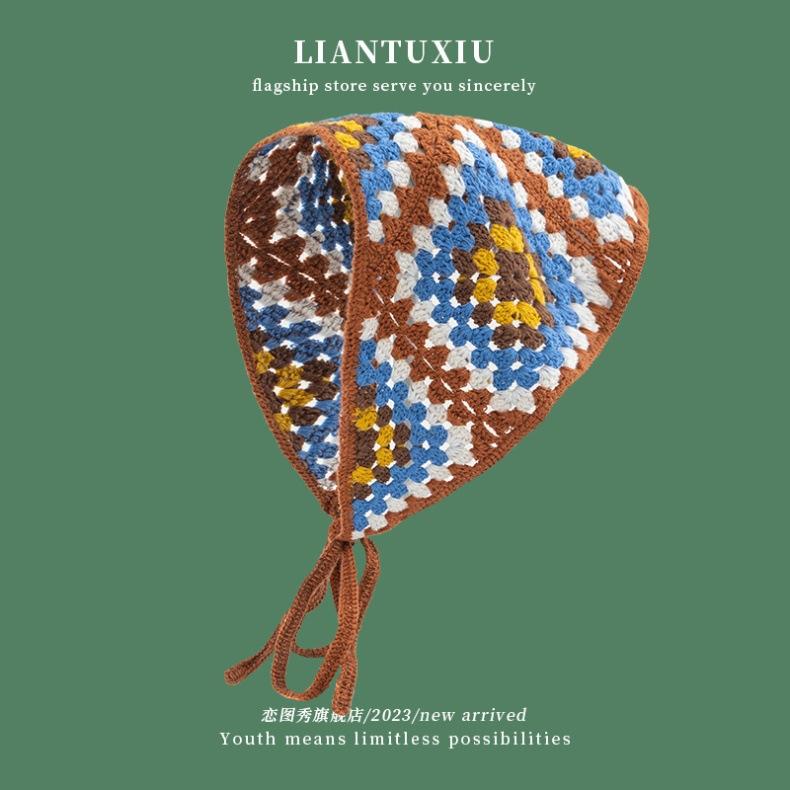 Bufanda Triangular Tejida a Crochet Retro Francés de Primavera y Otoño Estilo Pastoral Dulce y Lindo para Cabeza Spice Girl Adorno para el Cabello Cinturón para el Cabello de Mujer Moda