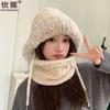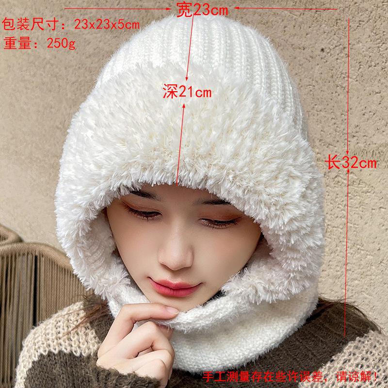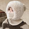 Gorro cálido de felpa de punto multifuncional para mujer, para otoño e invierno, para montar al aire libre, resistente al frío, bufanda, gorro con jersey integrado
