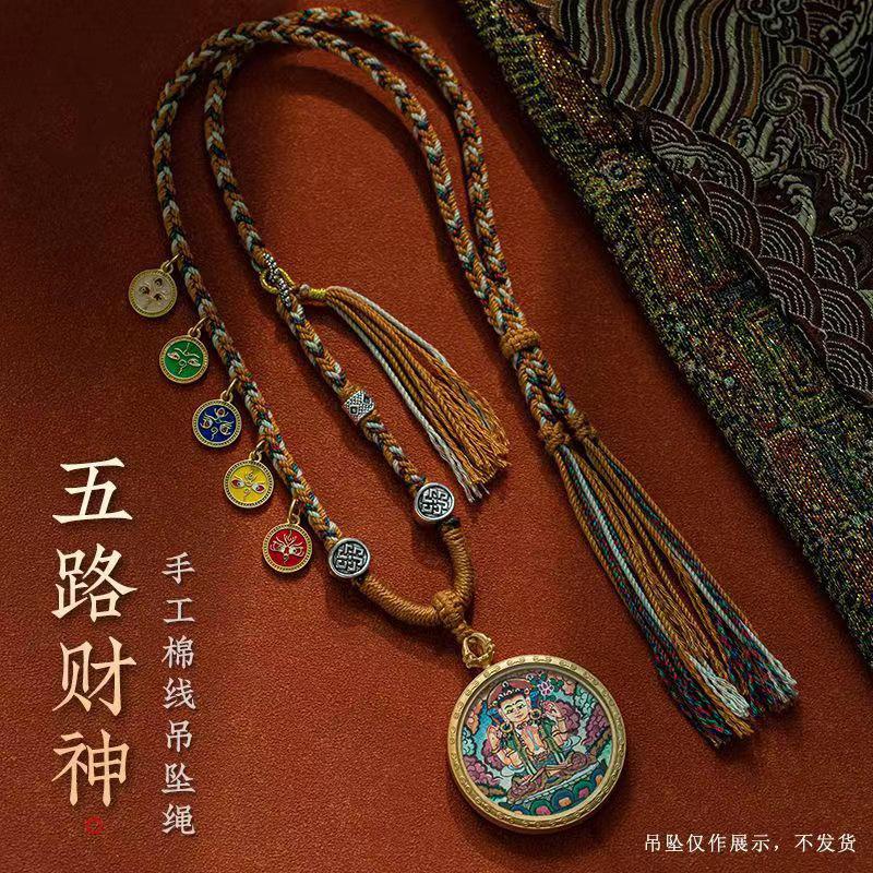 Colgante de collar Dios de la Riqueza de cinco vías tejido a mano colgante thangka tibetano accesorios de cuerda patrón de festival chino cuentas espaciadoras