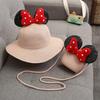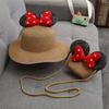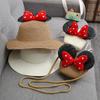 Beige (mickey bow) flat brim straw hat, Pink (mickey bow) flat brim straw hat, Khaki (mickey bow) flat brim st...