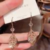 Corea del Sur Dongdaemun Super Flash Zirconio Cristal Hoja Gancho para la Oreja Pendientes Temperamento Moda Personalidad Pendientes Rojos de Internet para Mujer Venta al por Mayor
