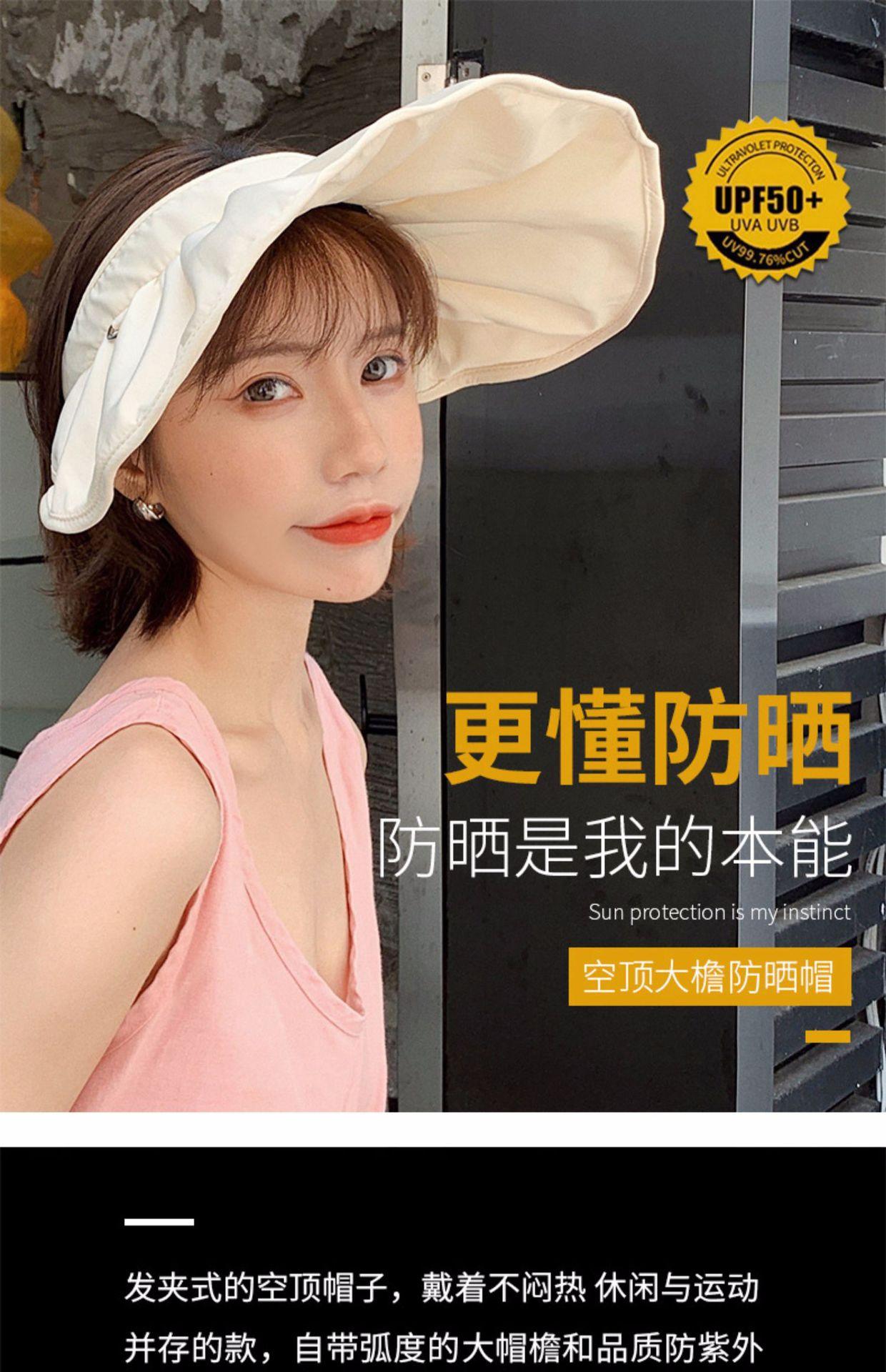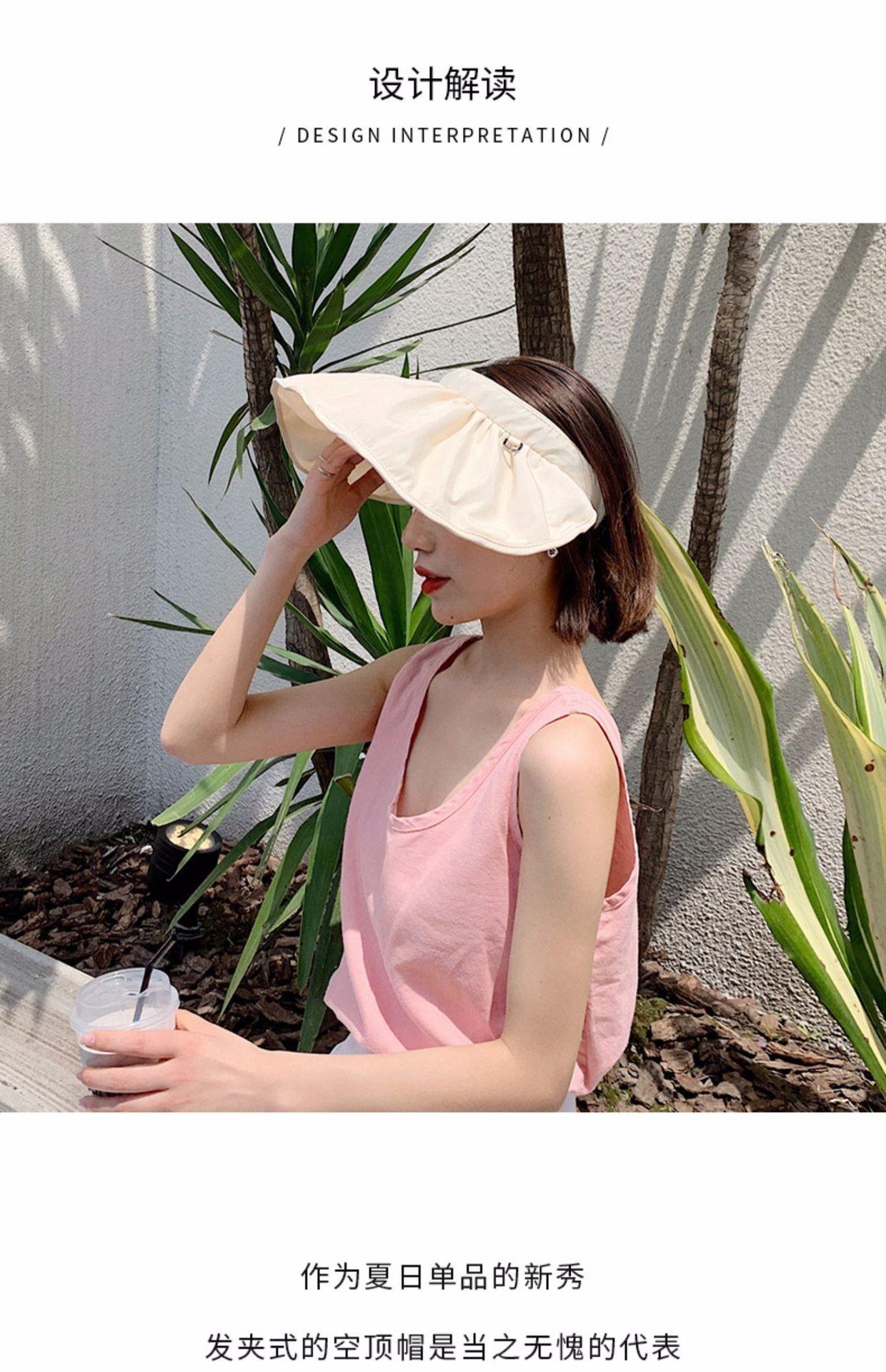 Sombrero de aro para el cabello para mujer, sombrilla, anti-ultravioleta, a prueba de sol, plegable, con parte superior vacía, ala grande, que cubre la cara, sombrero de concha, sombrero de moda para verano