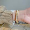 Pulsera de Acero Inoxidable Transfronteriza para Mujer, Pulsera de Oro de Acero de Titanio que No se Desvanece, Nueva Pulsera de Oro Arenado de Diamantes Completo de Alta Gama