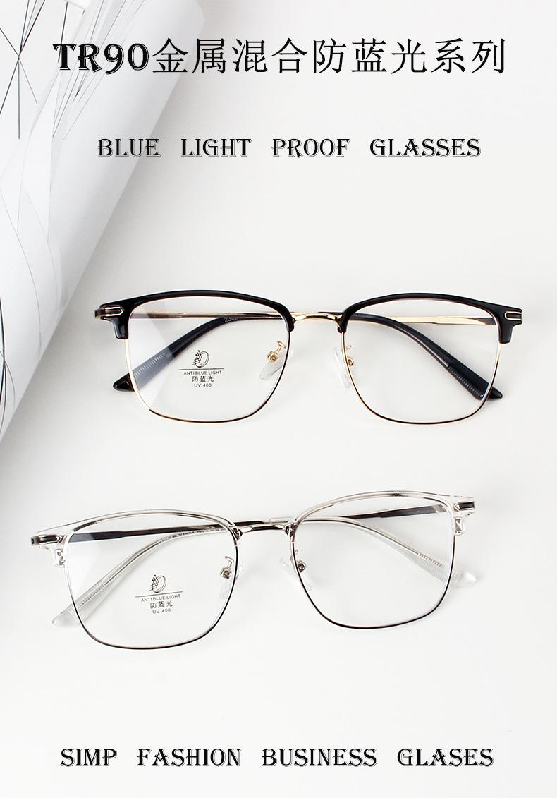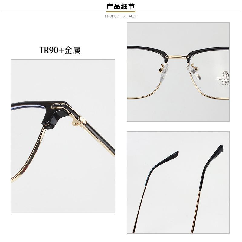 Armazón para cejas TR90 para hombre de negocios, gafas lisas con luz anti-azul, armazón de gafas de moda para mujer, armazón de gafas de metal