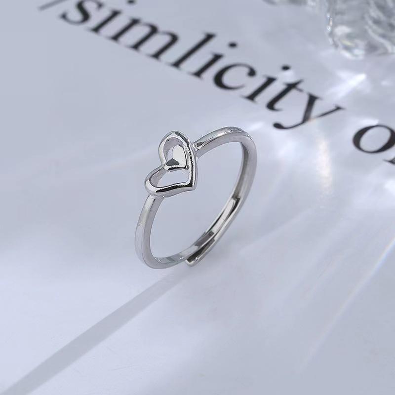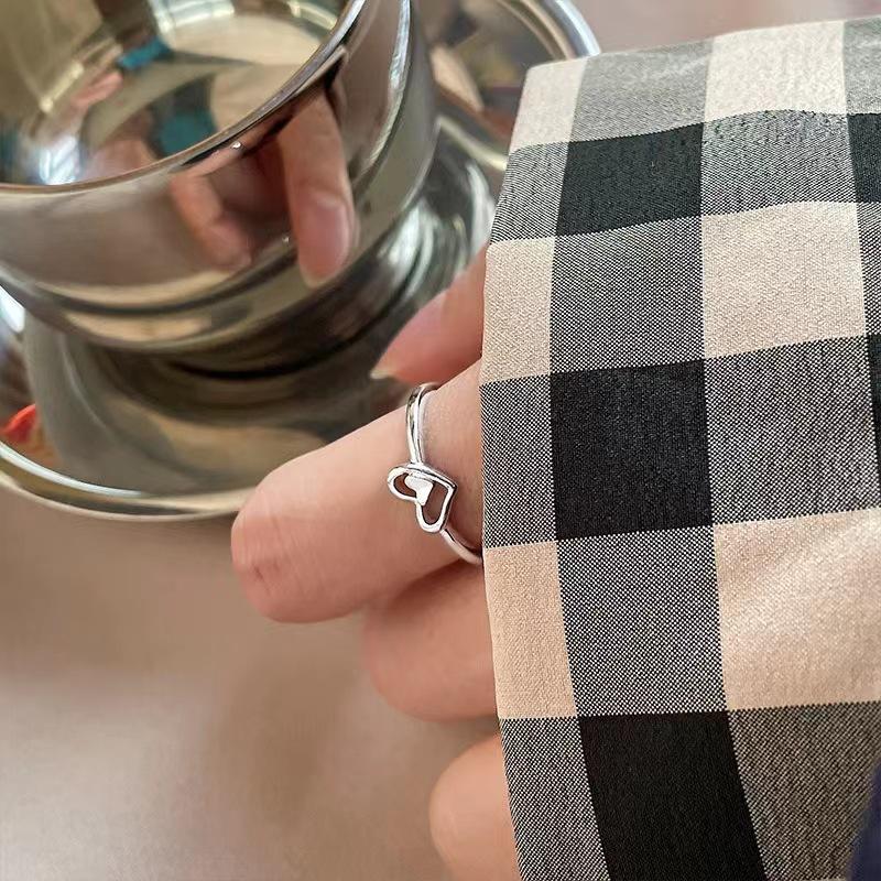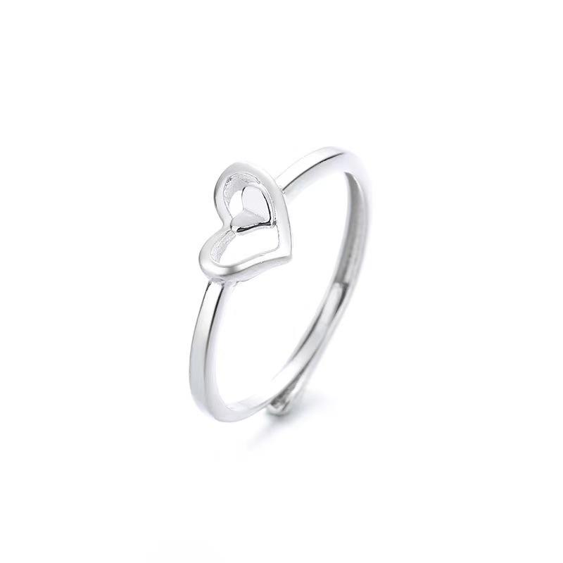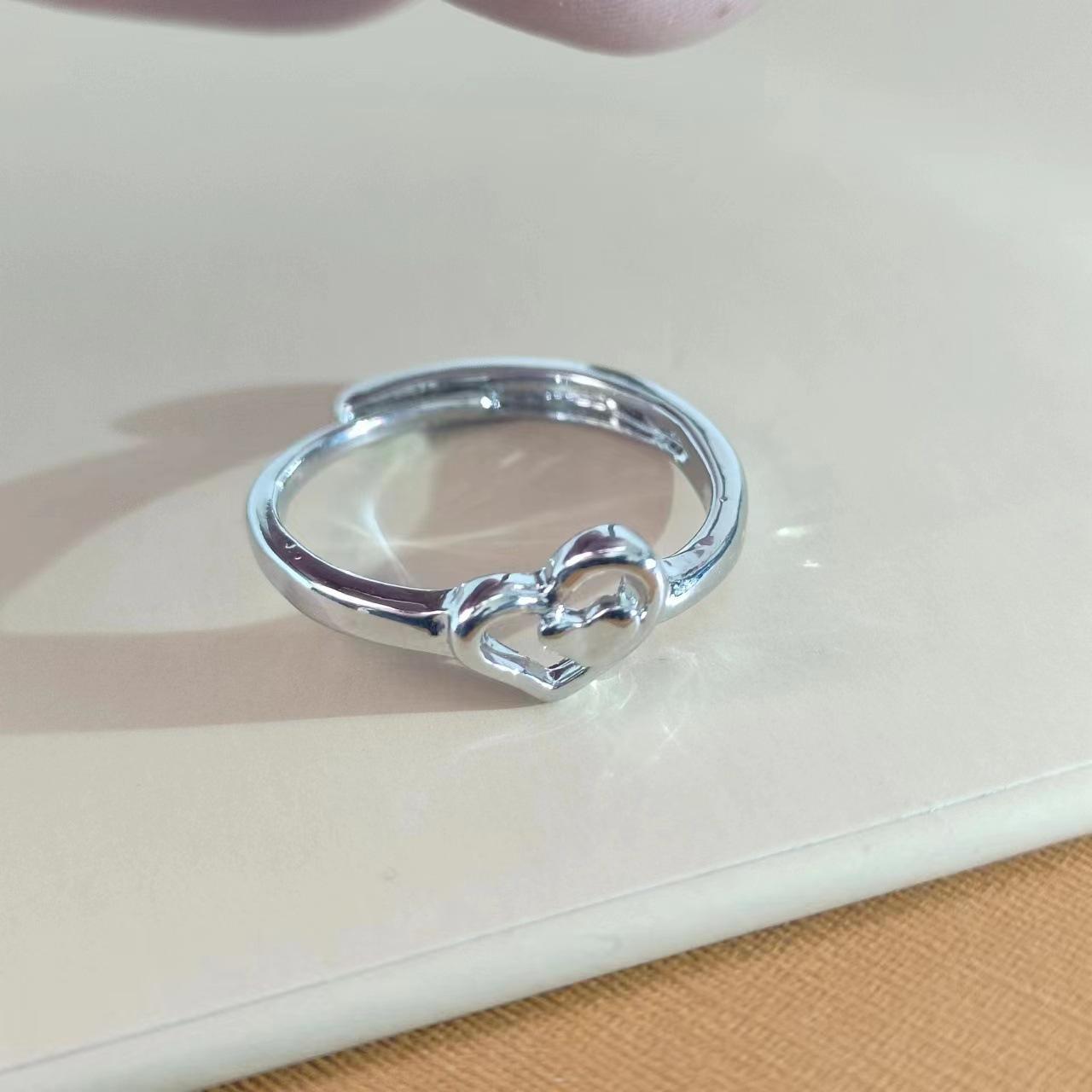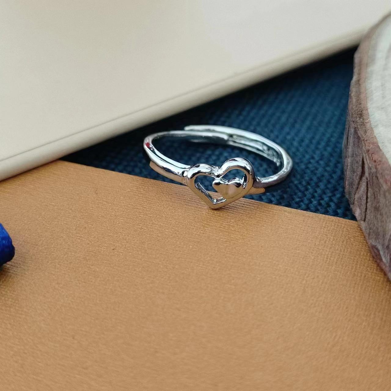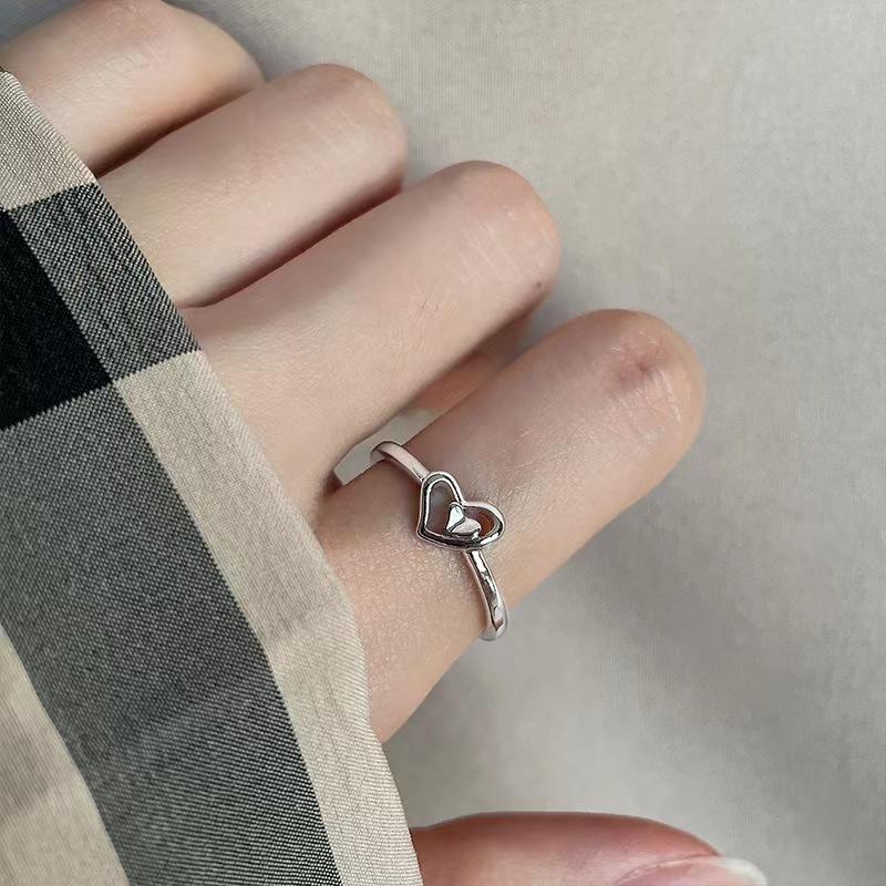 Anillo de Amor Hueco con Sentido de Chica Dulce Apertura Simple Personalizado Brillante Doble Forma de Corazón de Durazno Anillo para Dedo Índice Moda Otoñal