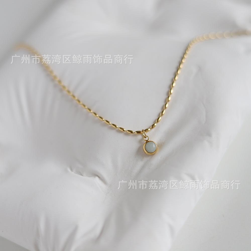 Incrustado con aventurina, el color es mayormente verde claro, y la piedra es de color claro.