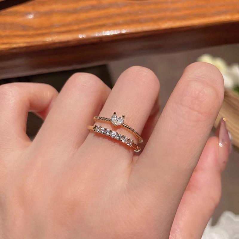 Anillo de Amor Estilo Francés para Mujer de Dos Piezas Rig Anillo de Dedo de Circonita con Forma de Corazón Fresco y Dulce Pequeño Amor Anillo Abierto