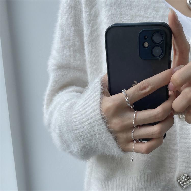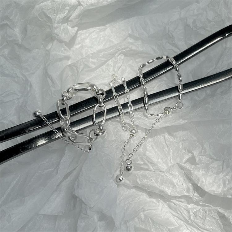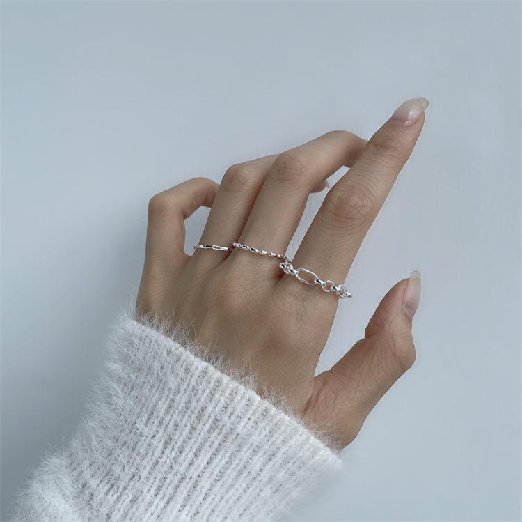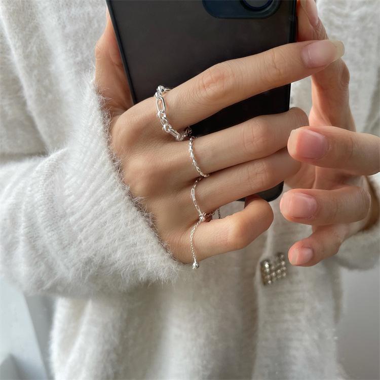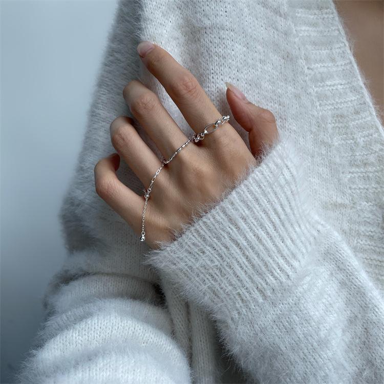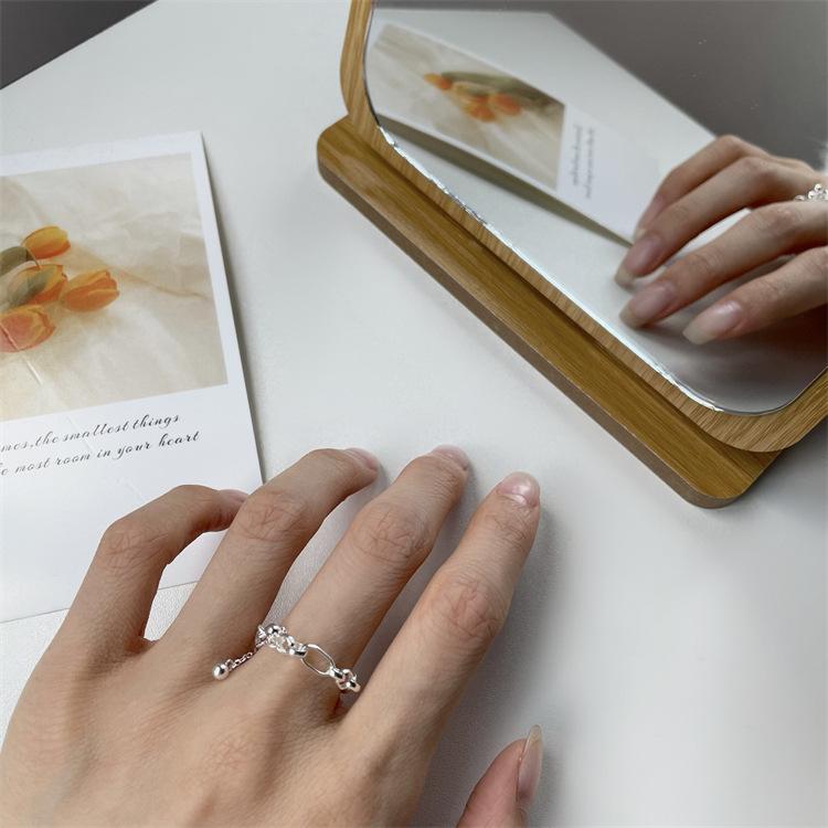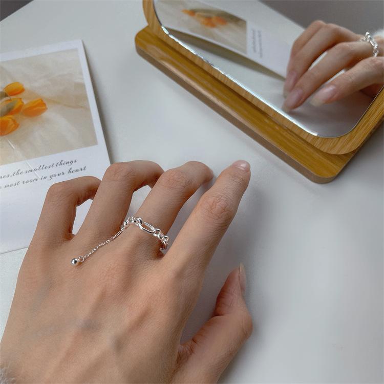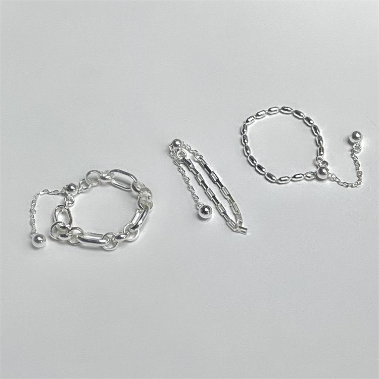 Estilo K de Dongdaemun Anillo Elegante Suave de Cadena Ajustable de Plata Esterlina S925 para Mujer Combinación Ins