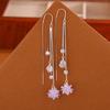 Aretes Largos de Plata Esterlina S925 con Piedra Ojo de Gato de Flor de Hielo Púrpura para Mujer, Elegantes Aretes de Gancho con Borla, Joyería Antiperdida
