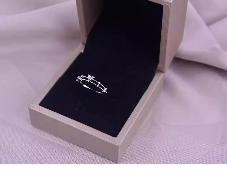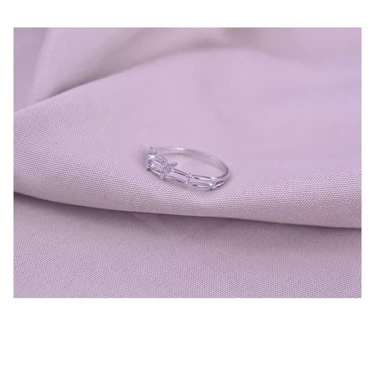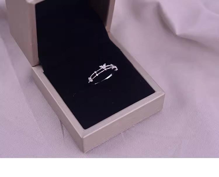 Anillo de Mariposa Doble Capa para Mujer Anillo de Diamantes Flash de Lujo Ligero Anillo Abierto Viento Frío Diseño Nicho Moda Simple Nuevo