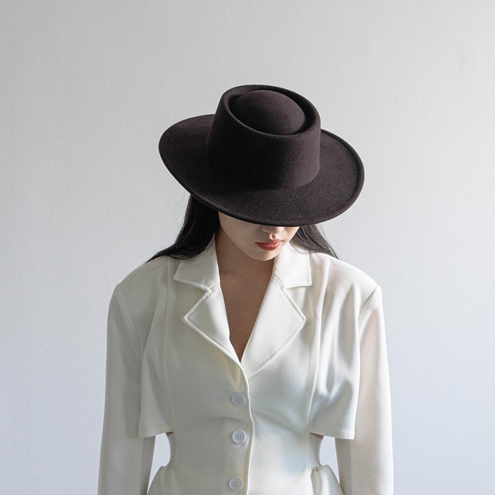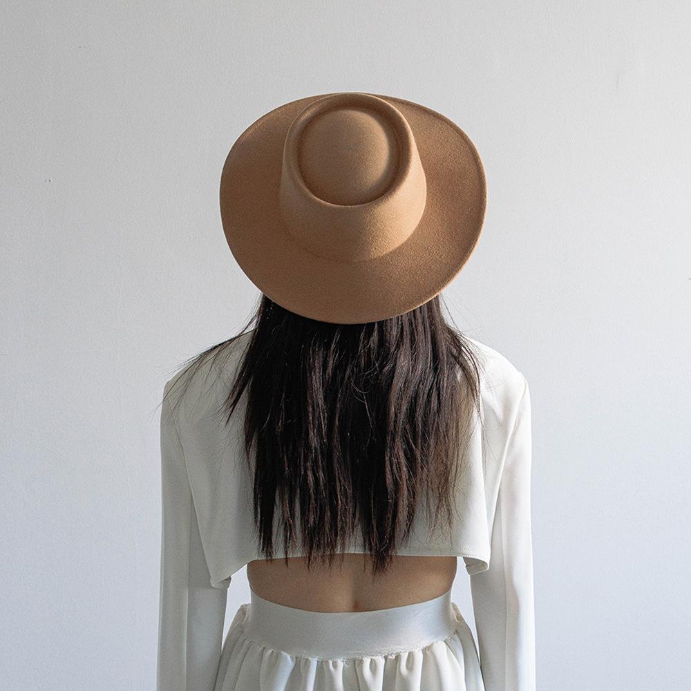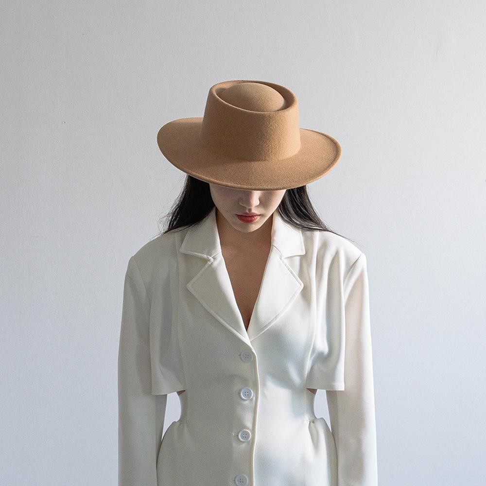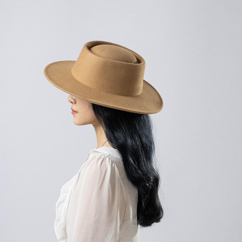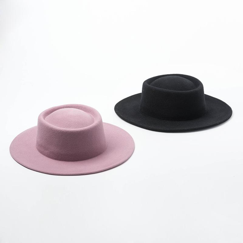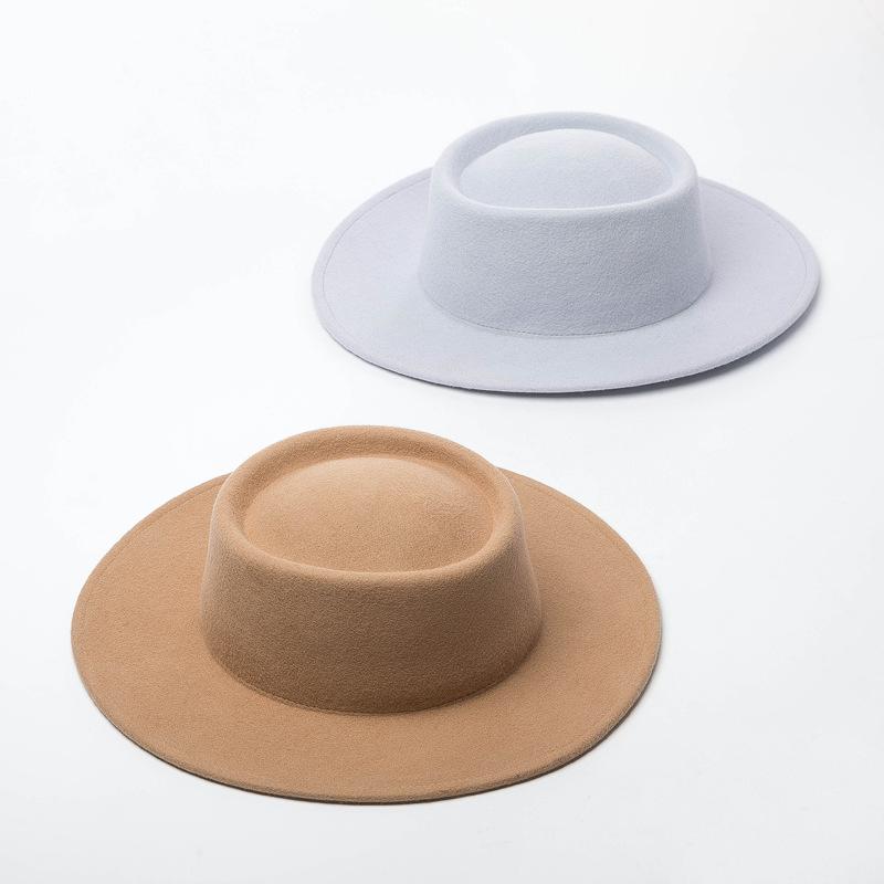 Estilo Coreano Otoño e Invierno Nueva Moda Simple Sombrero de Lana con Parte Superior de Anillo Sombrero de Fieltro de Viaje con Forma Cóncava para Mujer