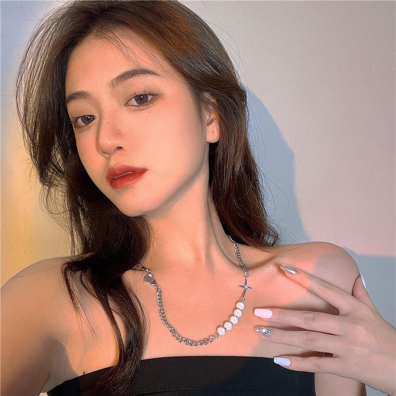 Nuevo collar de perlas para mujer, estilo disco, estilo hip hop, cadena de suéter de acero y titanio, cadena larga de marca de moda, accesorios de calle.