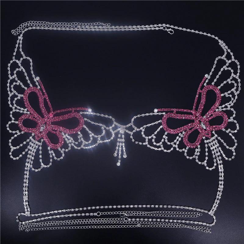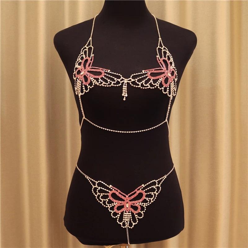 Europa y Estados Unidos transfronterizo nuevo sexy bikini mariposa pedrería Cadena corporal conjunto discoteca para mujer Accesorios cadena corporal