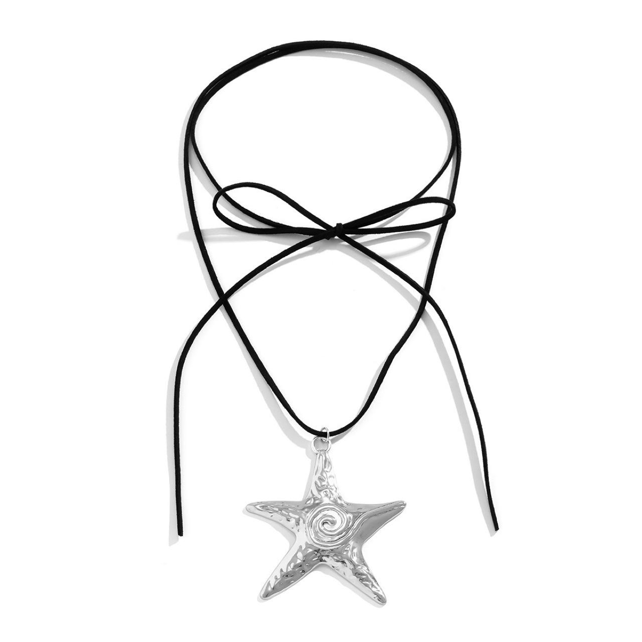 Collar con colgante de estrella de cinco puntas grande, oscuro, fresco y dulce, con personalidad irregular, estilo transfronterizo de Europa y Estados Unidos para mujer.