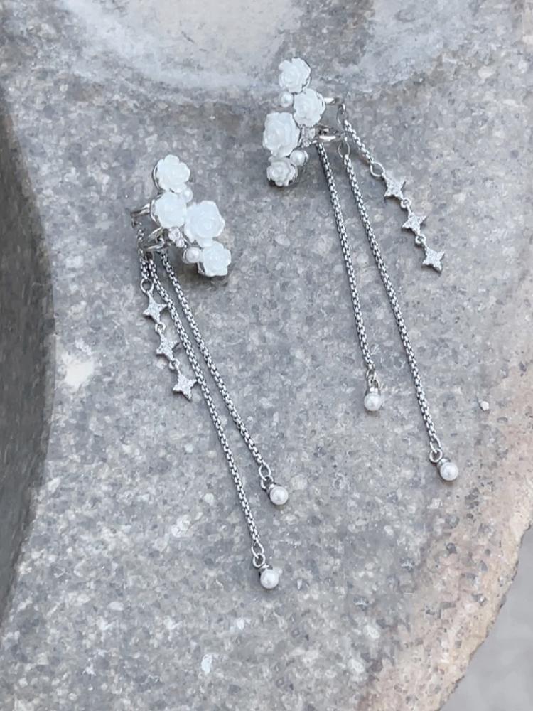 Pendientes con borla de rosa y hueso para la oreja, sin perforaciones, ligeros, de lujo, con diseño de nicho, de temperamento suave, al por mayor