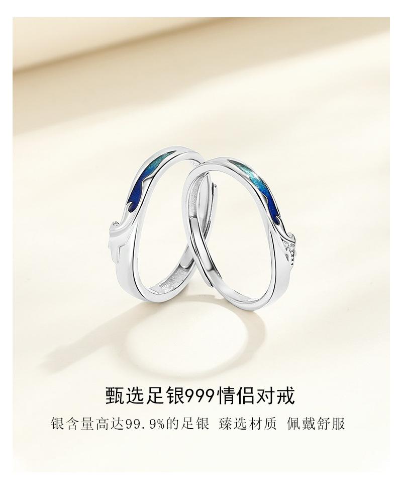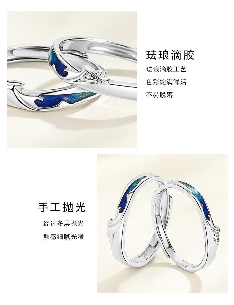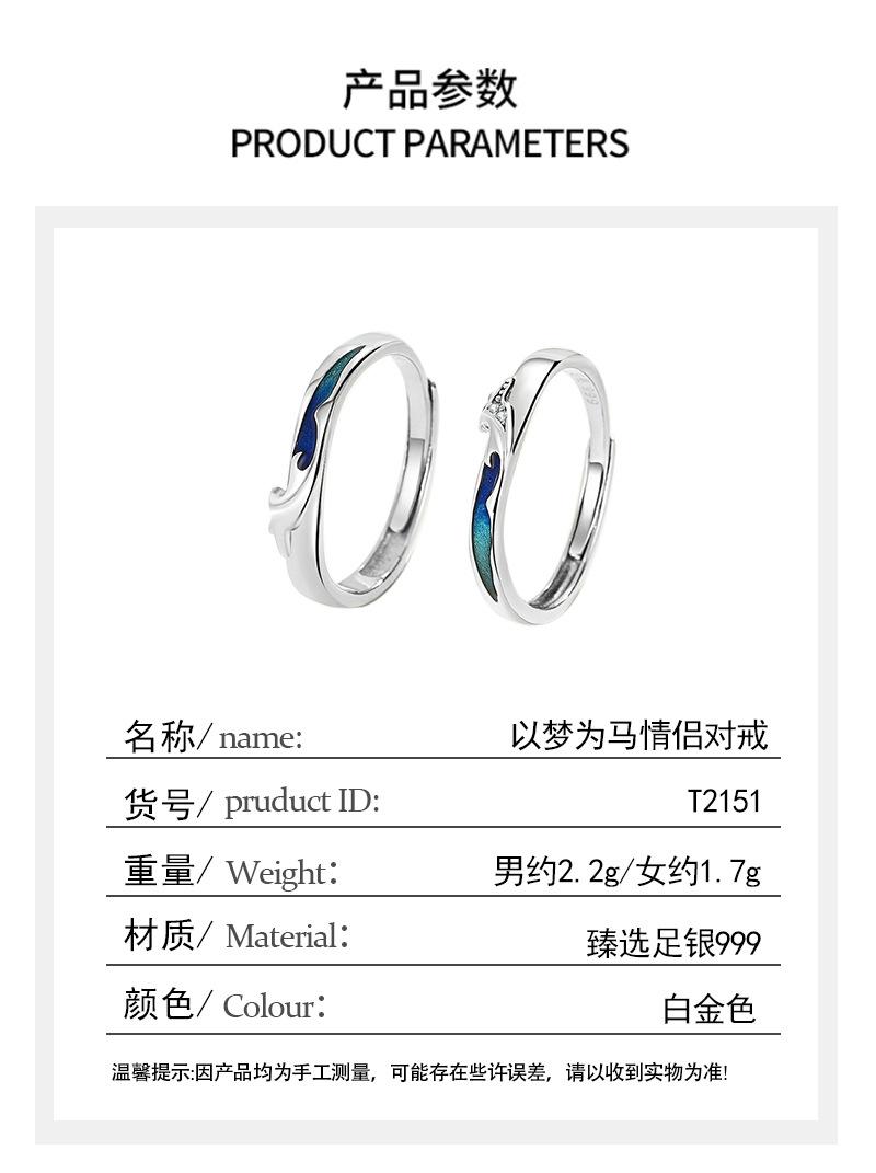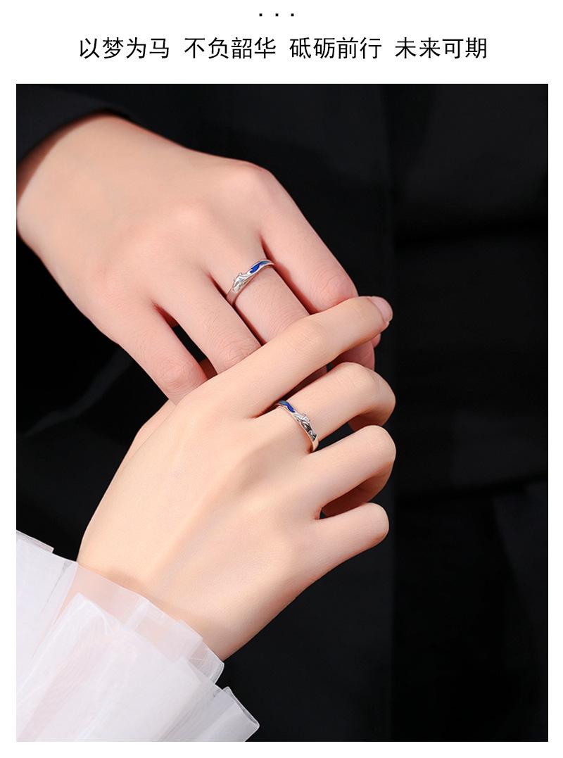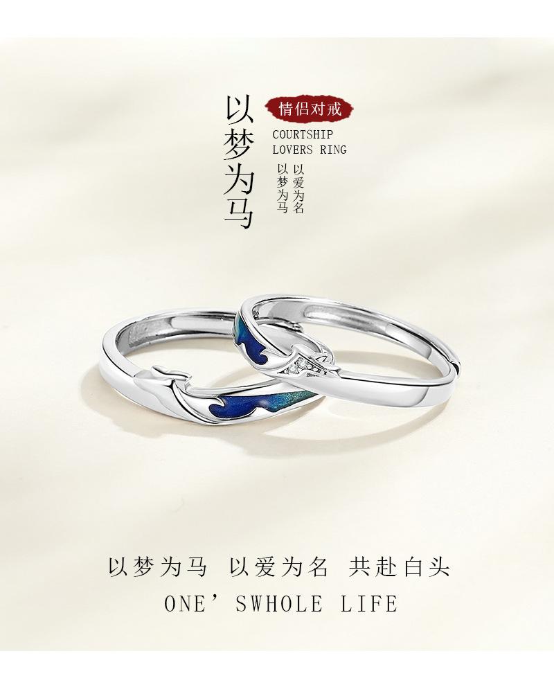 Anillo de pareja de diseño original en plata pura 999 con un sueño como caballo, anillo conmemorativo de esmalte de alta calidad con nicho de plata esterlina.