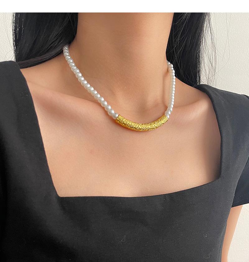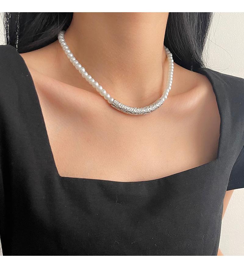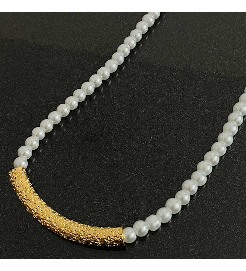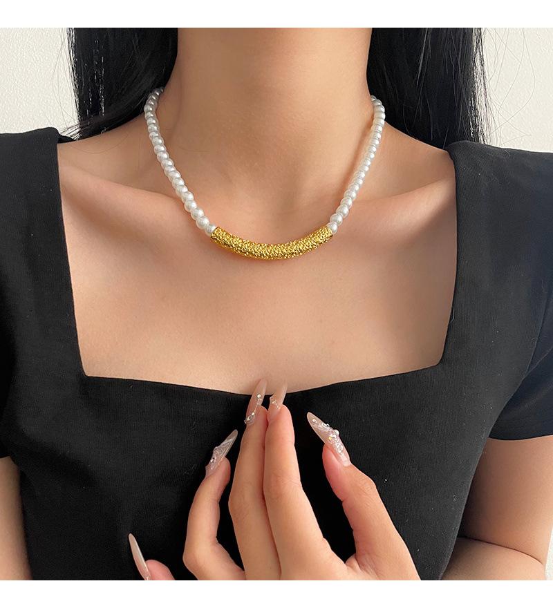 Collar de perlas con forma de codo de oro y plata con personalidad europea y americana, diseño de nicho femenino, estilo frío, accesorios elegantes, cadena de clavícula.