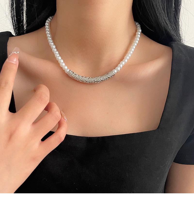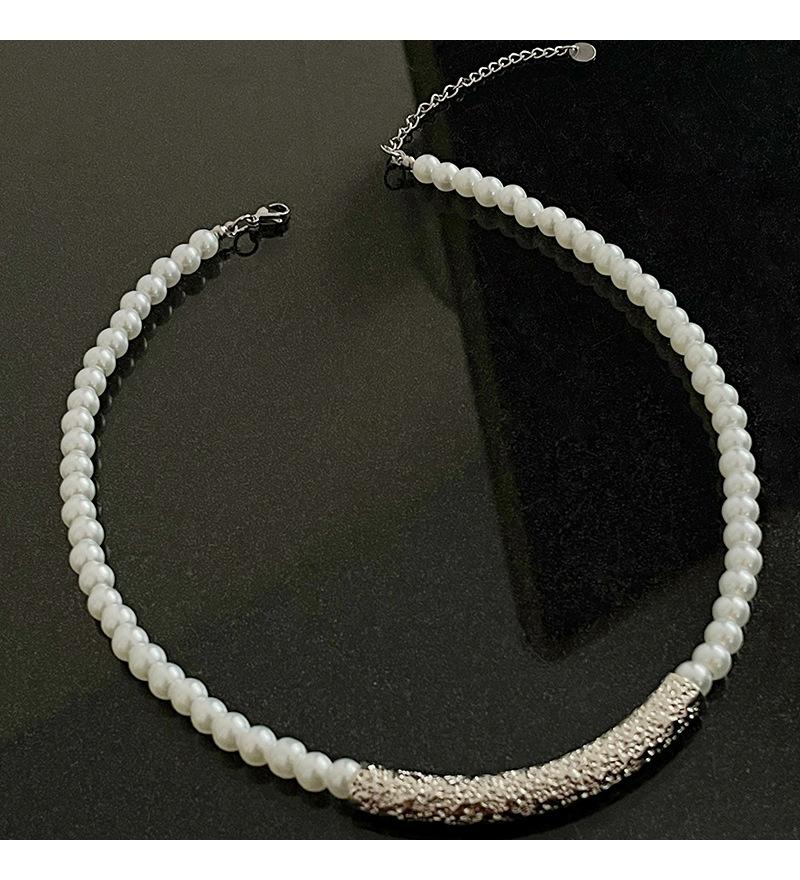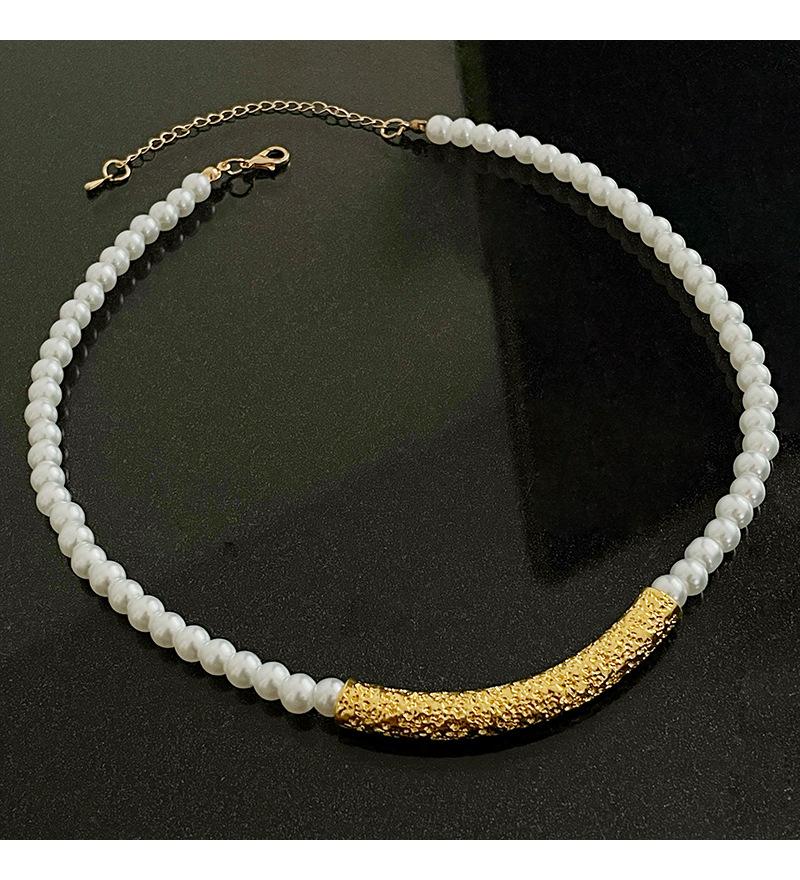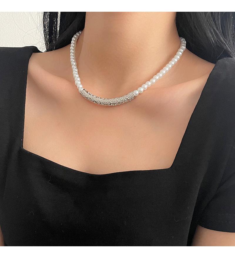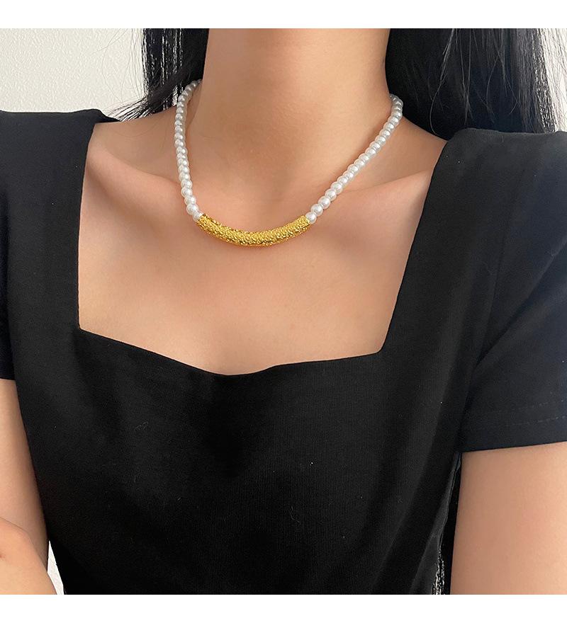 Collar de perlas con forma de codo de oro y plata con personalidad europea y americana, diseño de nicho femenino, estilo frío, accesorios elegantes, cadena de clavícula.