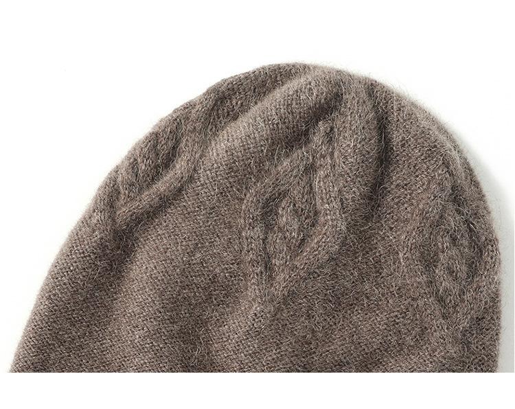 Gorro de punto 100 % cachemir para mujer, otoño e invierno 2023, nuevo, informal, a juego con colores, con orejeras cálidas y retorcidas