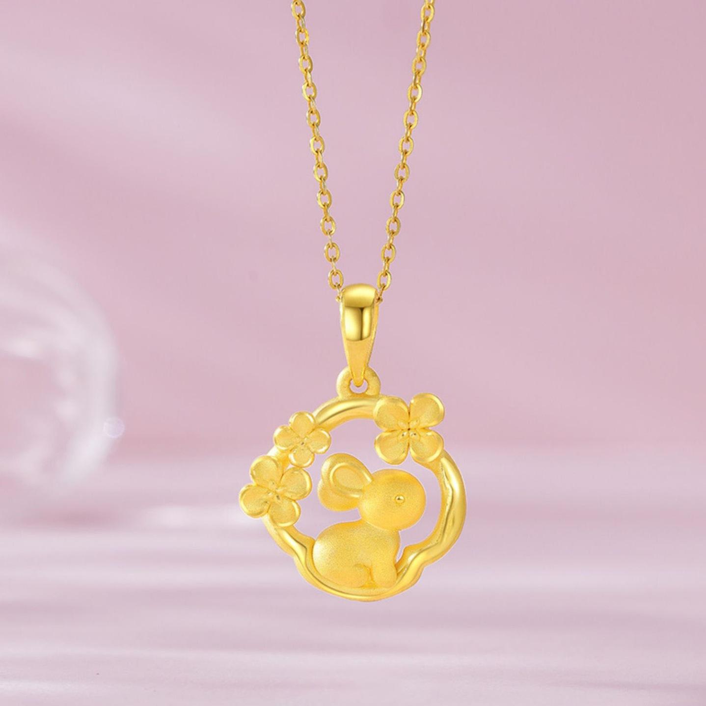 Collar Zhoujia Laurel Rabbit para mujer, estilo frío, ligero, lujoso, diseño de nicho, cadena de clavícula Benmingnian simple con el zodíaco.