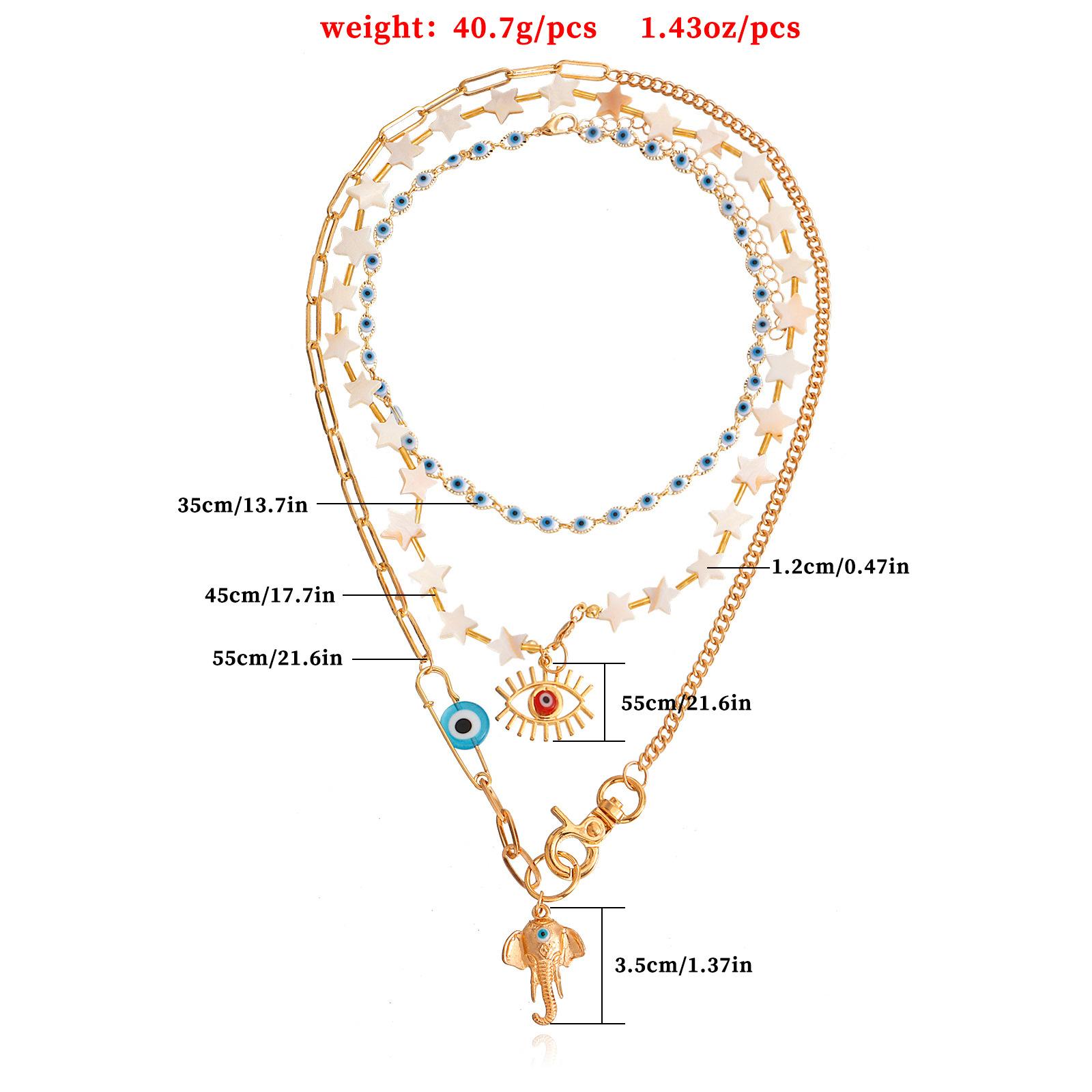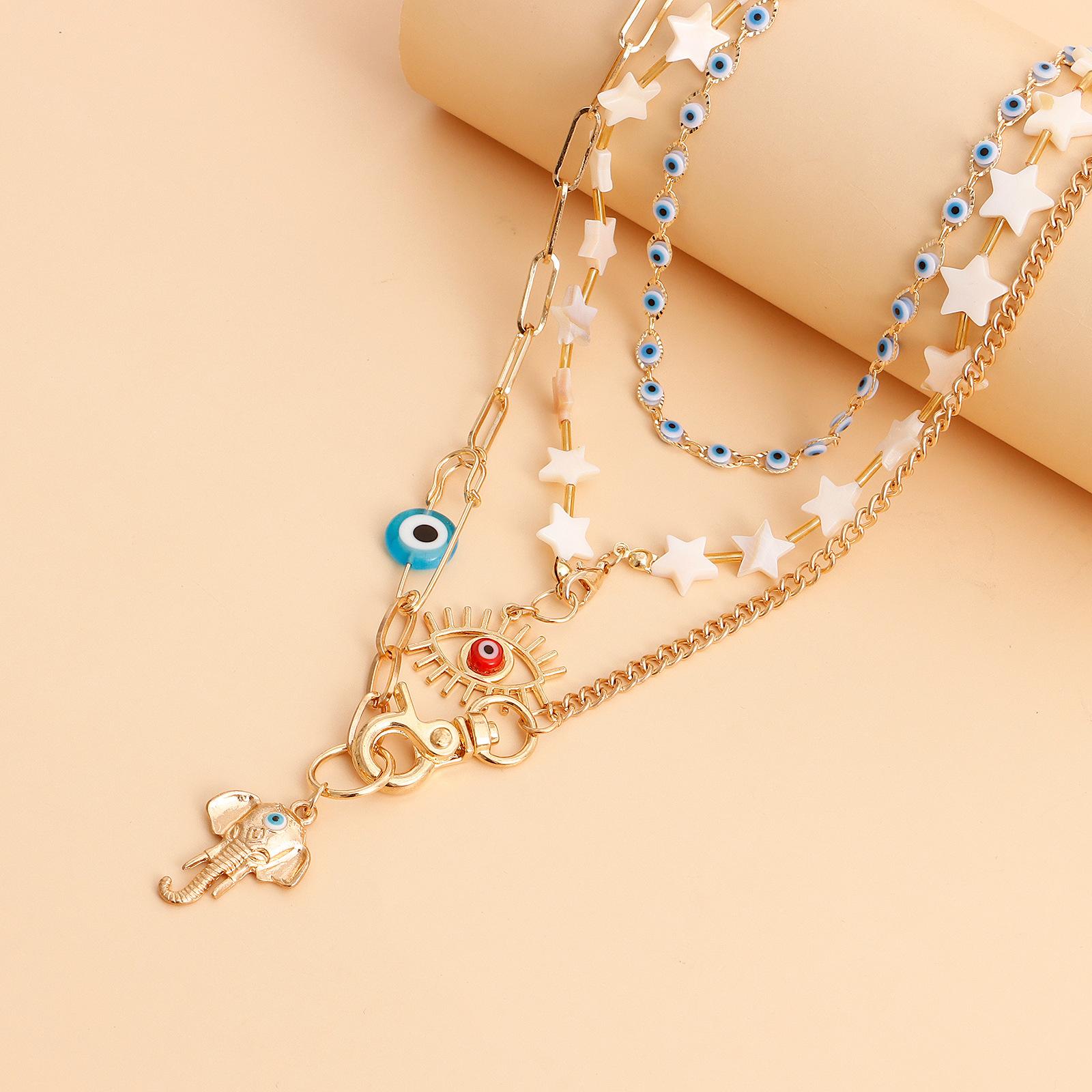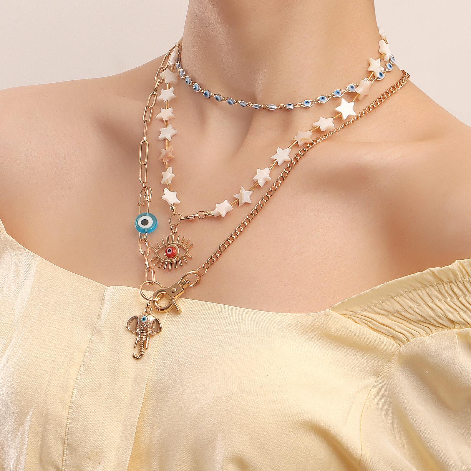 Joyería transfronteriza europea y americana, estilo bohemio, con estrella de cinco puntas, collar multicapa con ojo de diablo y accesorios para nariz de elefante.