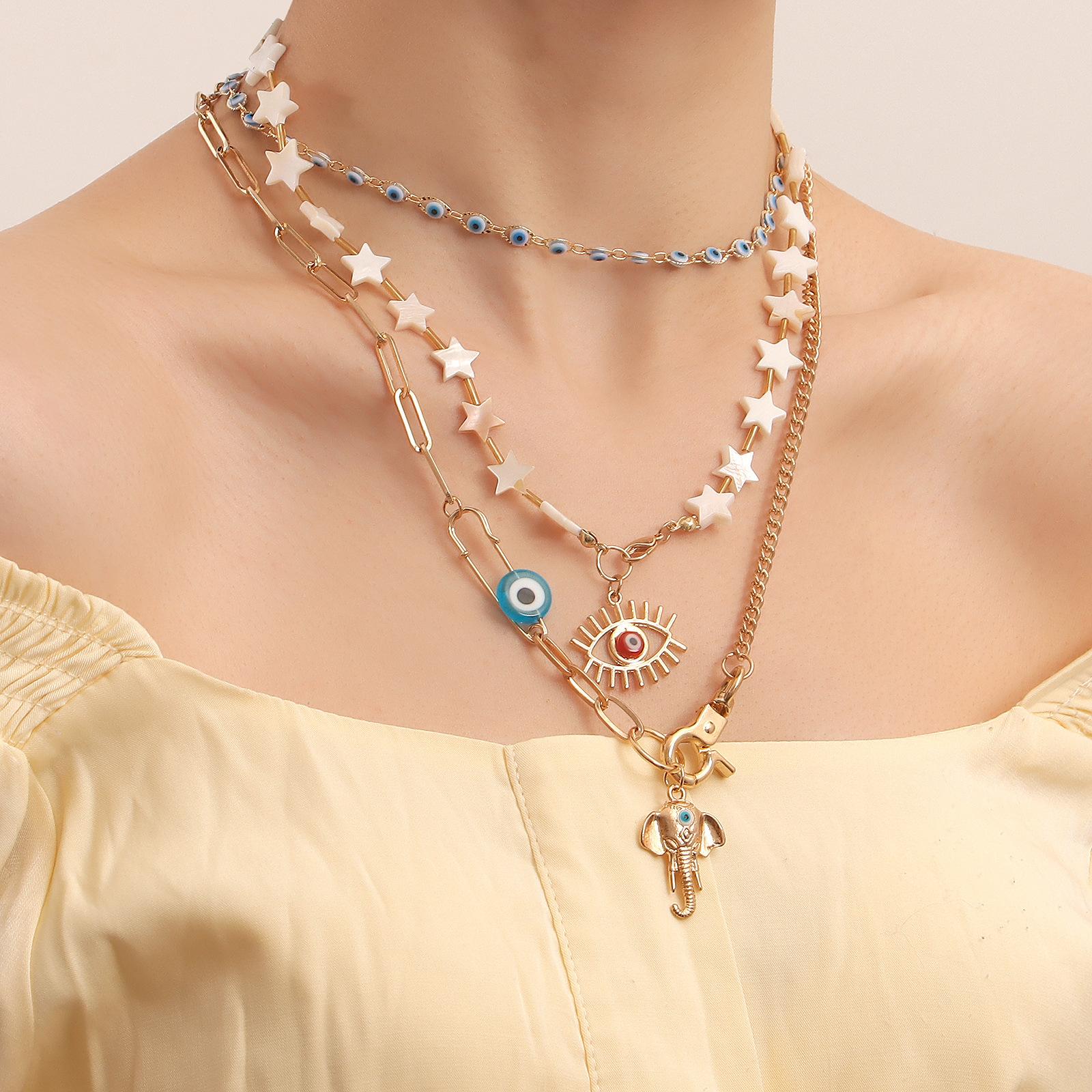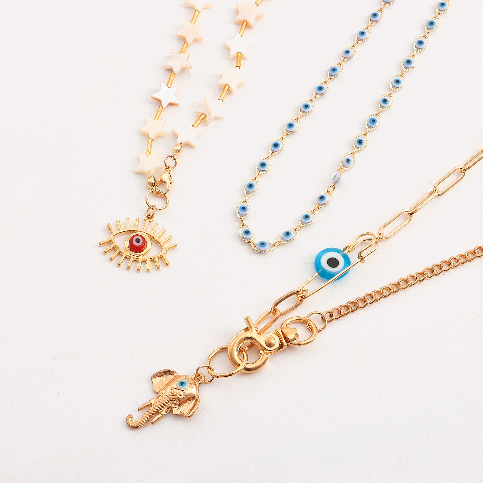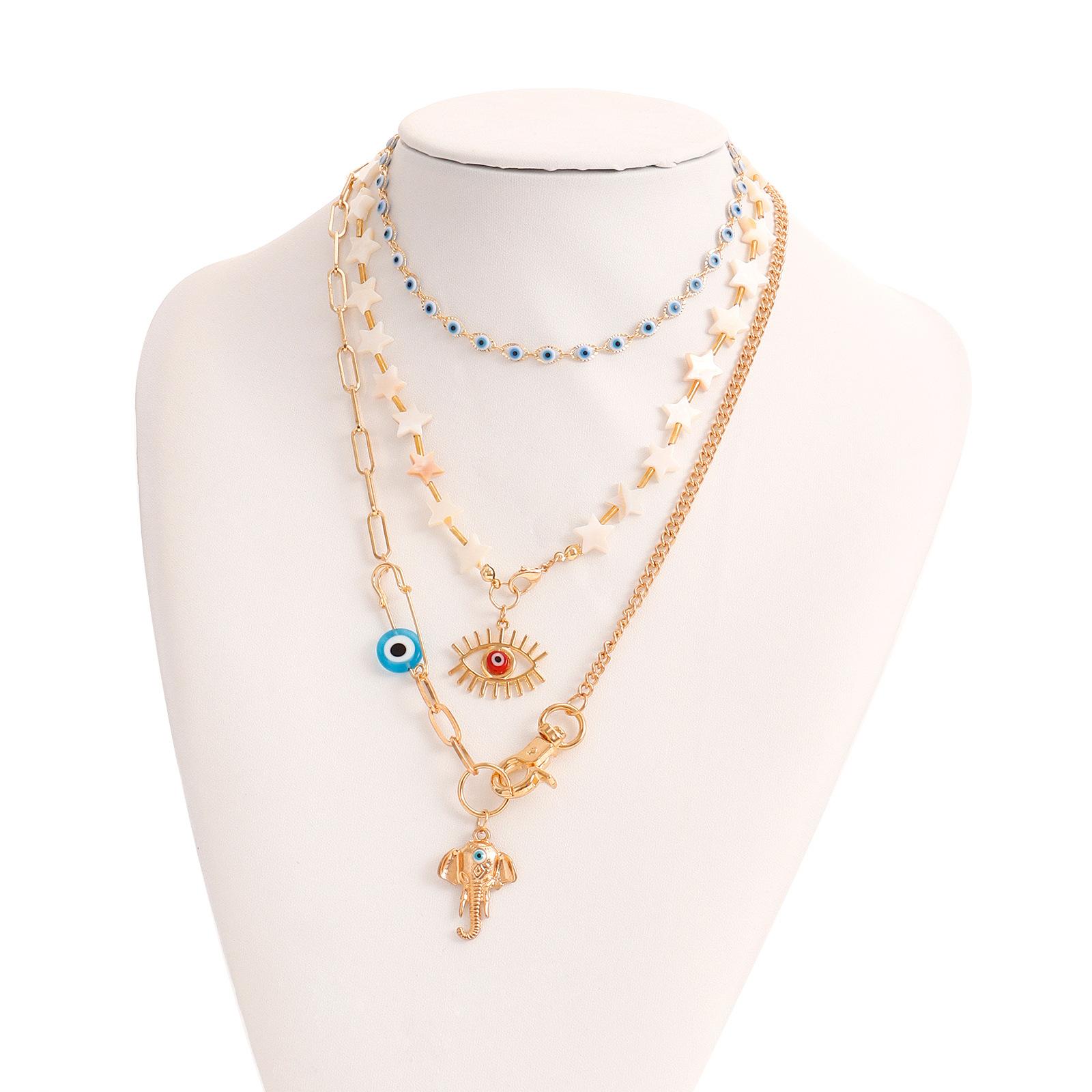 Joyería transfronteriza europea y americana, estilo bohemio, con estrella de cinco puntas, collar multicapa con ojo de diablo y accesorios para nariz de elefante.