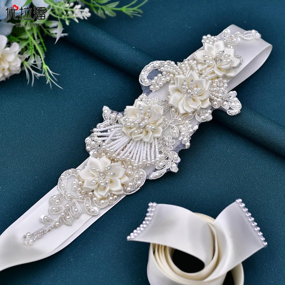 Youlapan S346 Cinturón Nupcial Europeo y Americano Flor Perla Borla Cinturón Nupcial Cinturón de Boda 2023 Nuevo Estilo