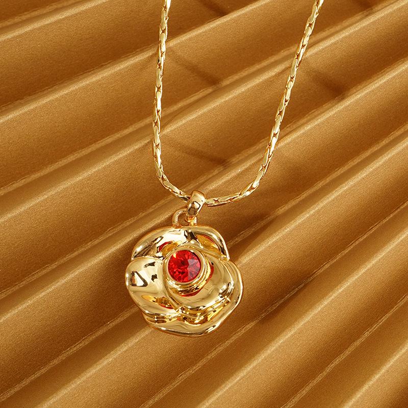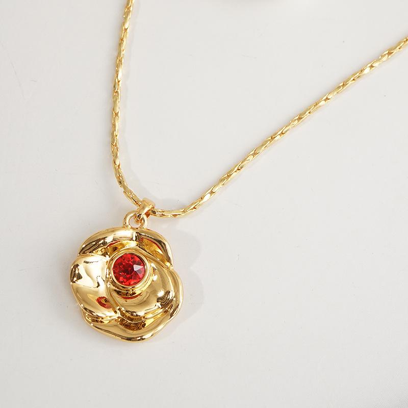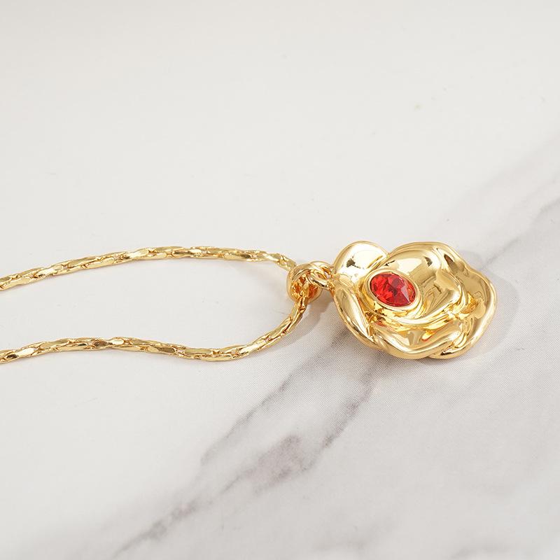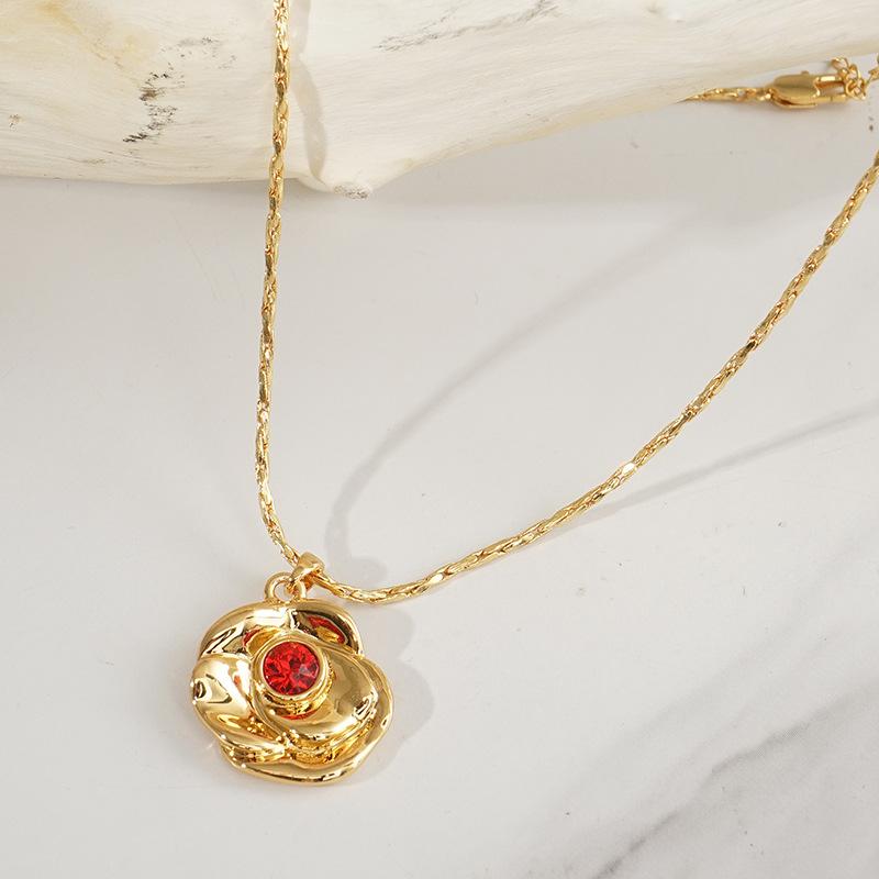 Collar con colgante de circonita roja con textura transfronteriza europea y americana, personalidad de moda, piedra de nacimiento de diciembre, colgante de piedra de nacimiento