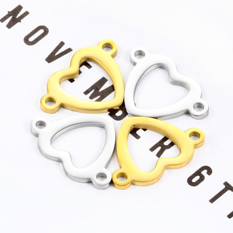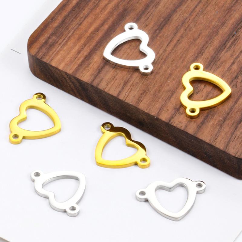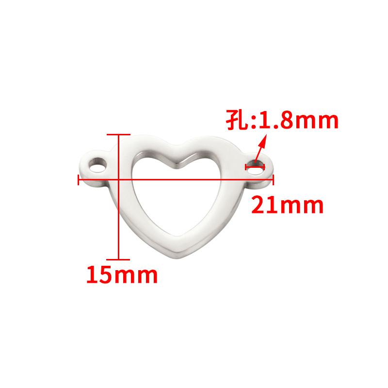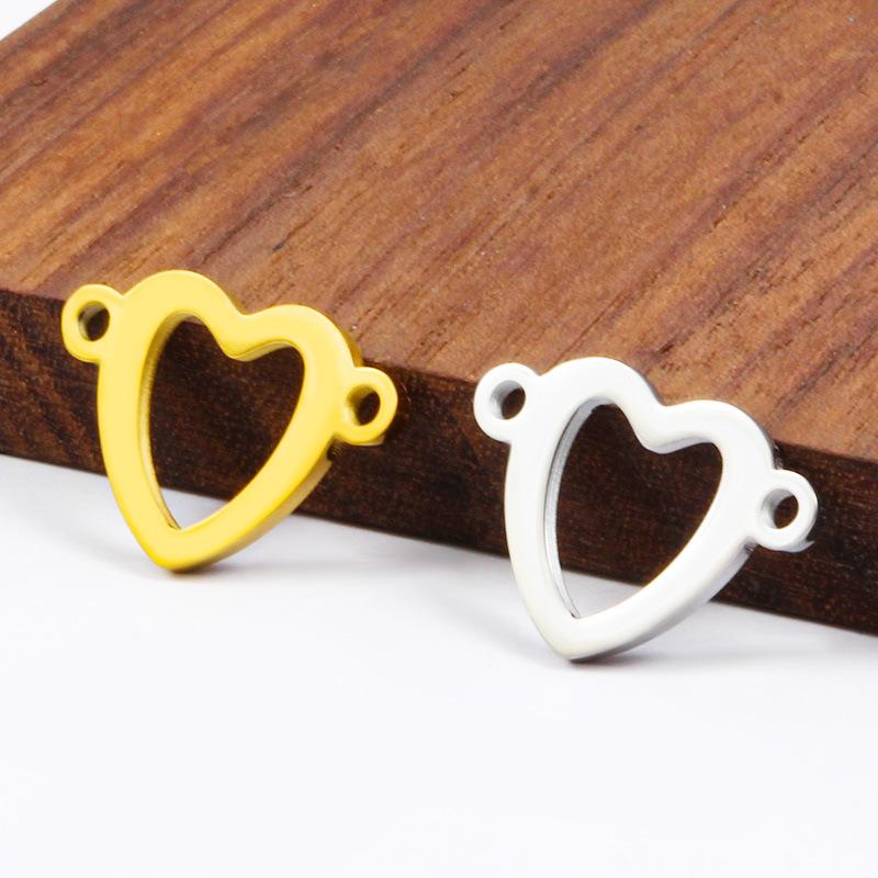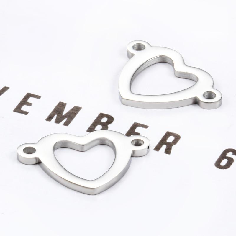 Nuevo colgante pequeño de acero inoxidable pulido con forma de corazón hueco y doble hebilla, accesorio de joyería DIY, collar, pulsera y amor.