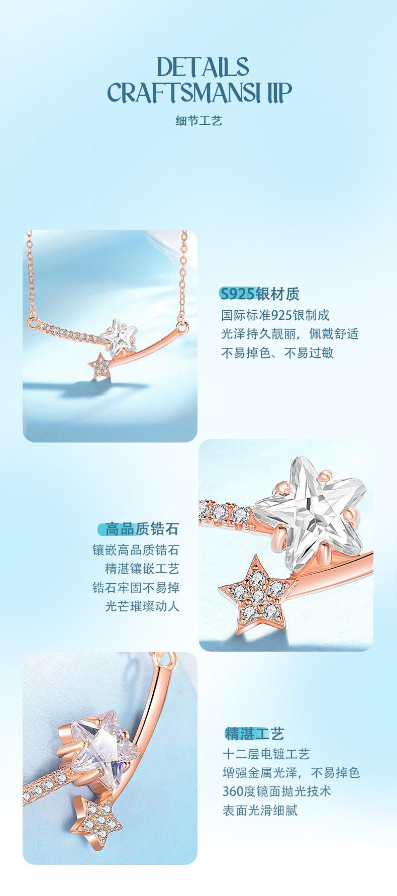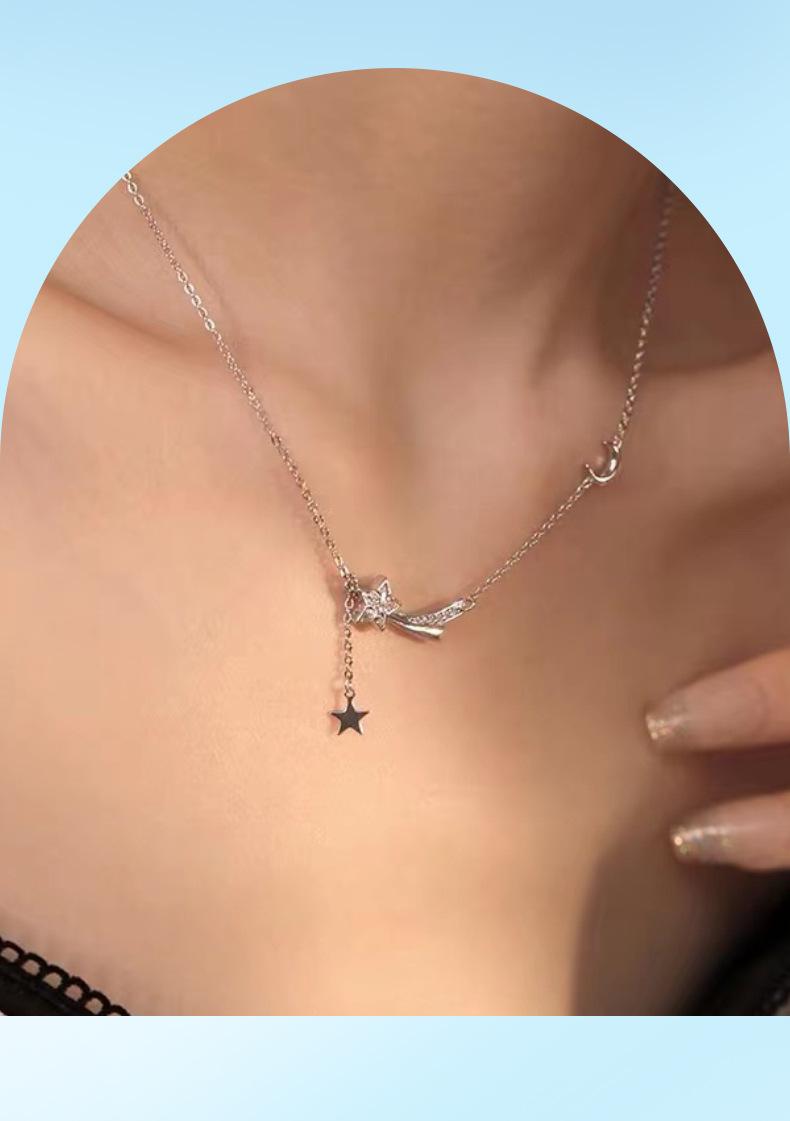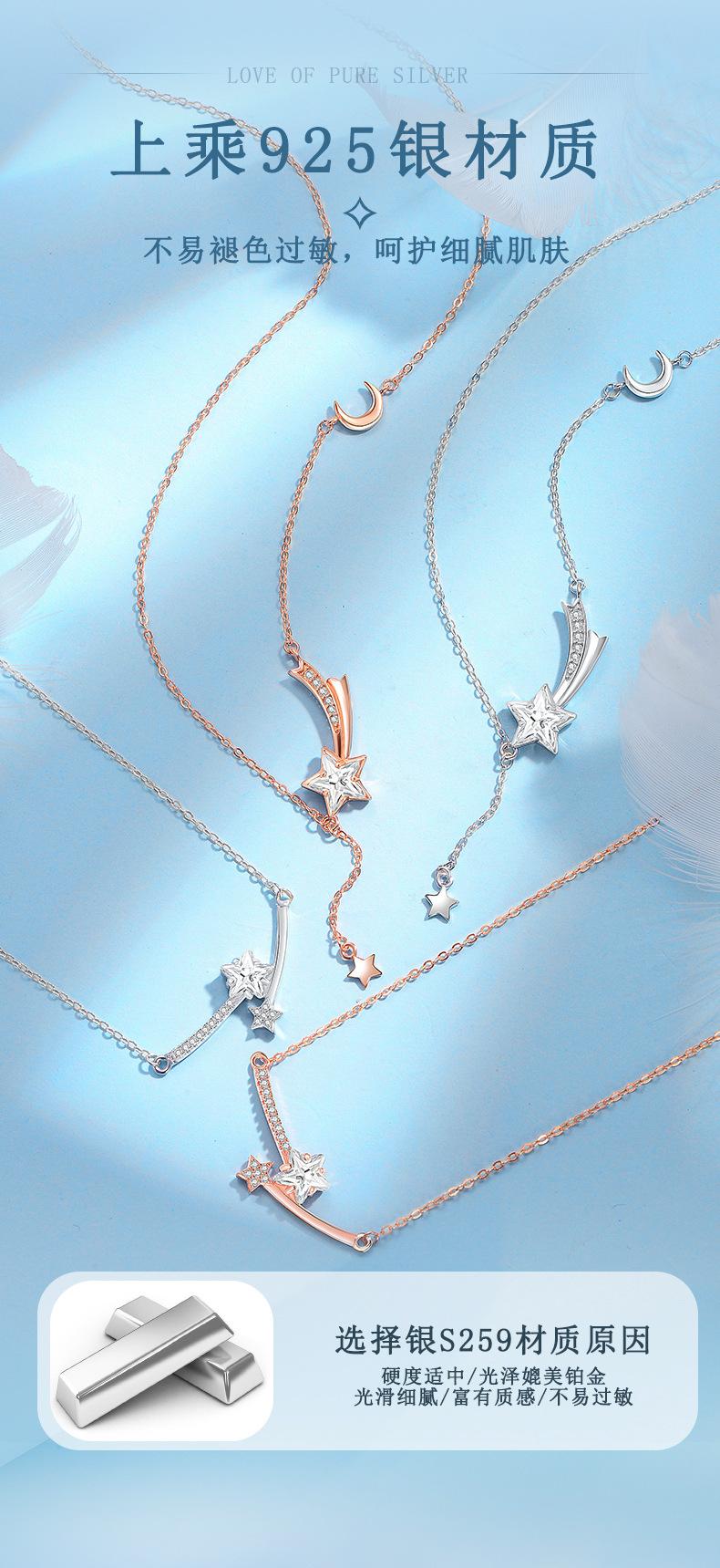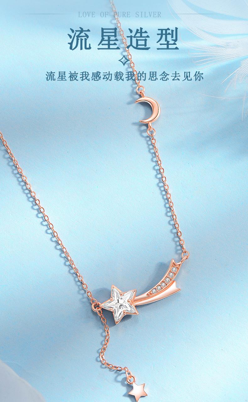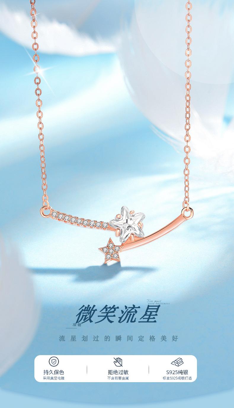 Collar de plata de ley S925 con forma de estrella, serie Meteor, con forma de estrella, para estudiantes, de lujo, con diseño avanzado, regalo