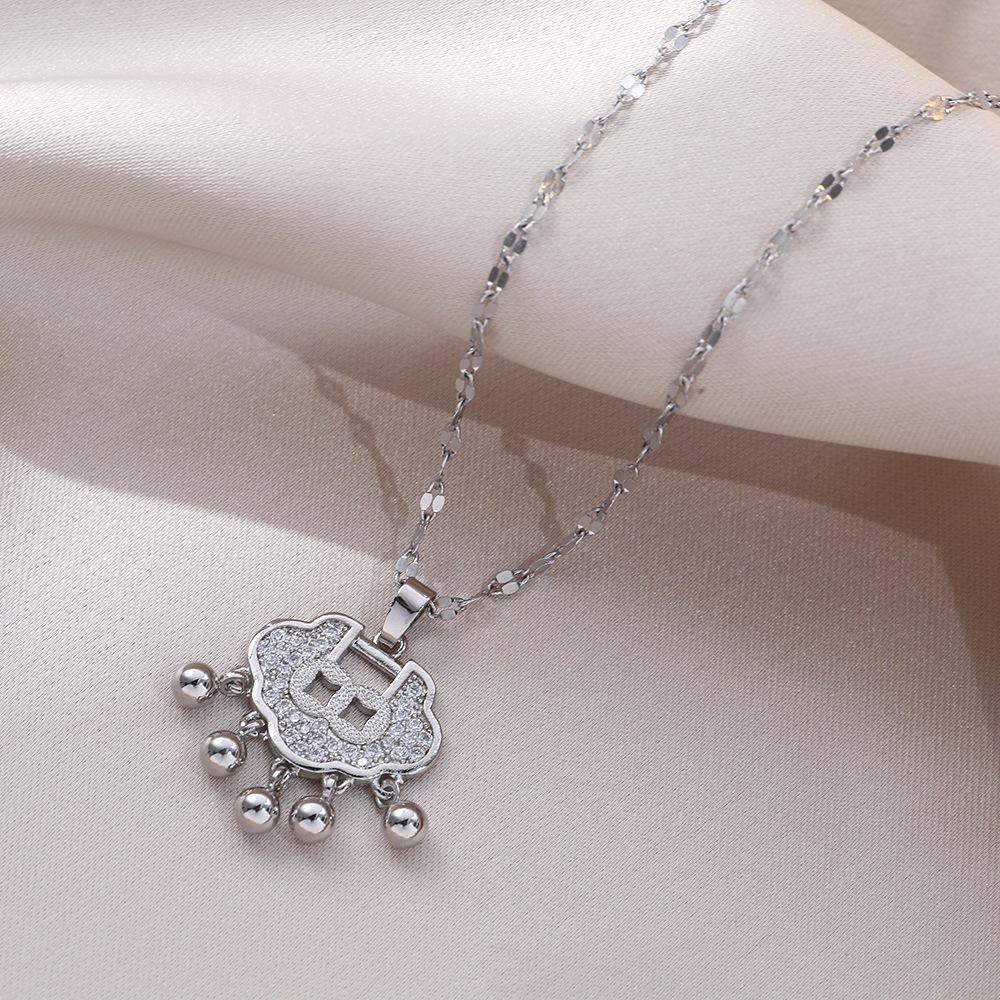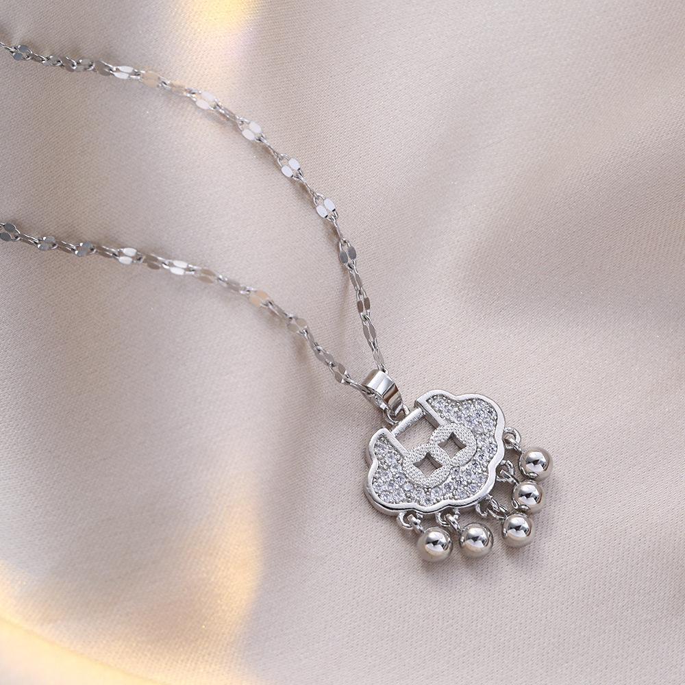 Collar de acero de titanio para mujer, estilo coreano, retro, dorado, con cierre de seguridad, cadena de clavícula, colgante simple, joyería nueva