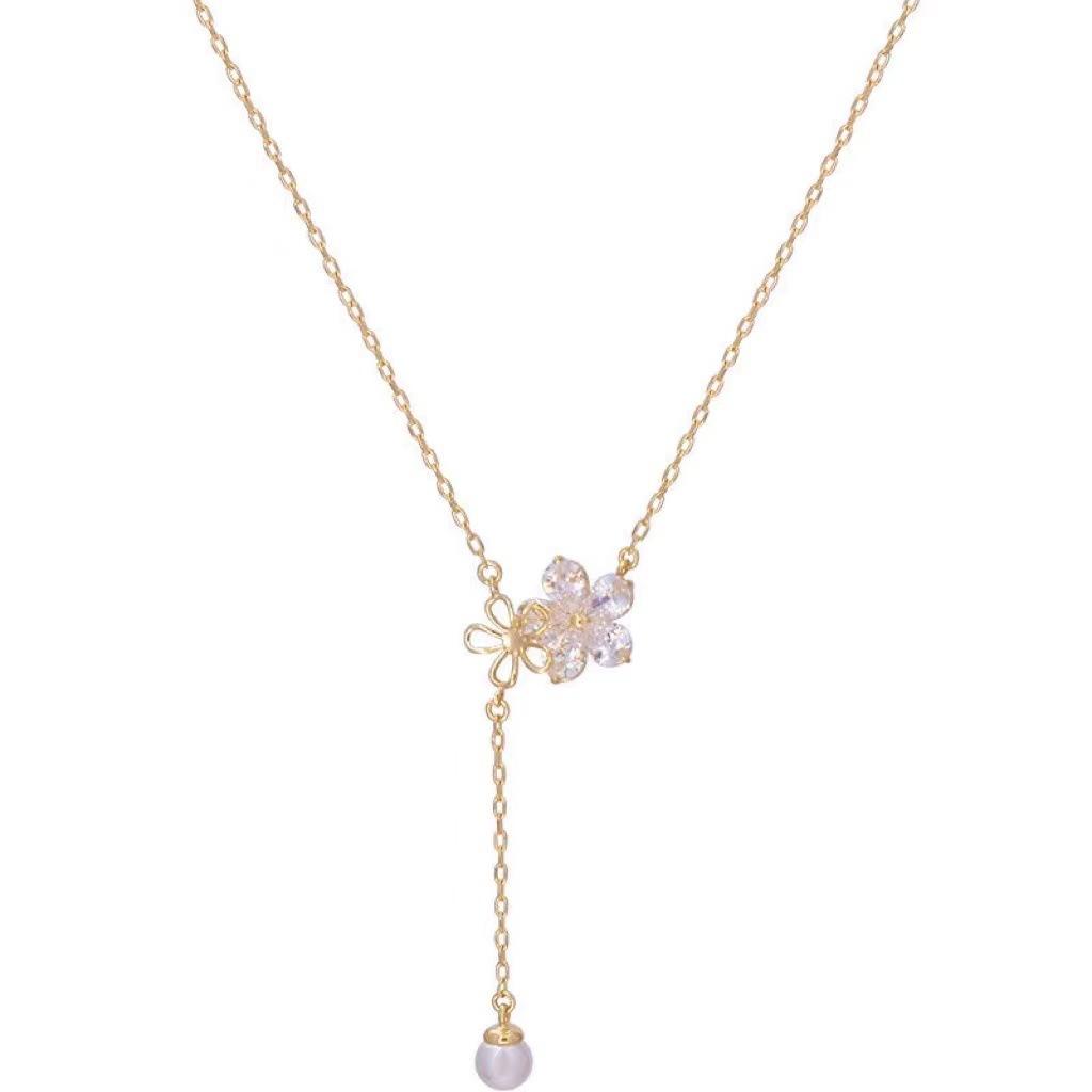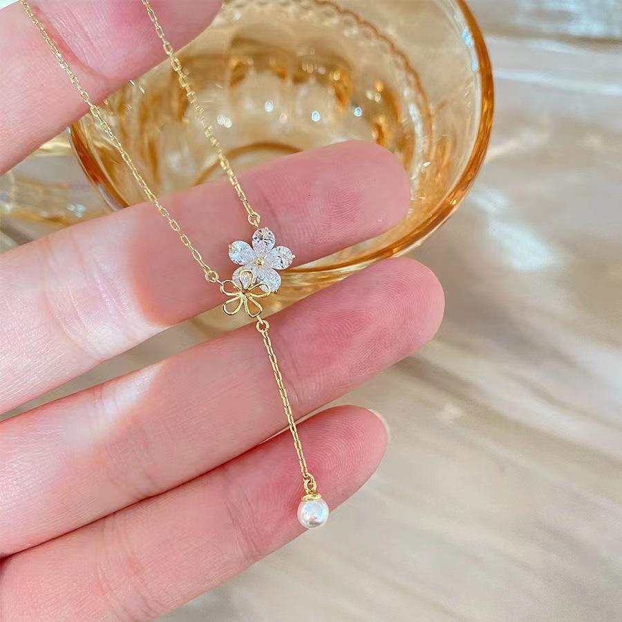 Collar con borlas de flores y perlas para mujer, moderno, de lujo, ligero, con diseño de nicho, cadena de clavícula sencilla y combinable.