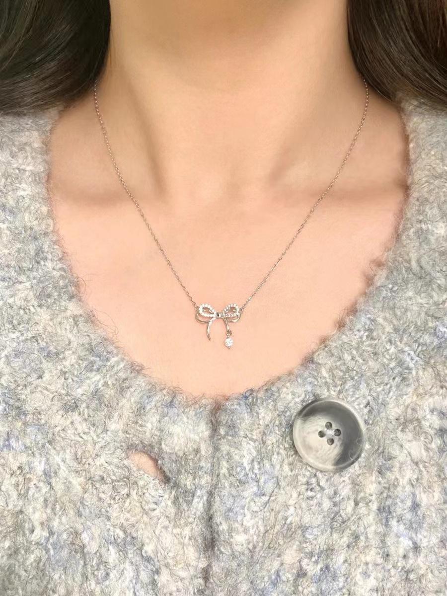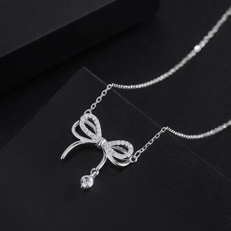 Micro-inlaid zirconium bow necklace "chain length 40cm +5cm]