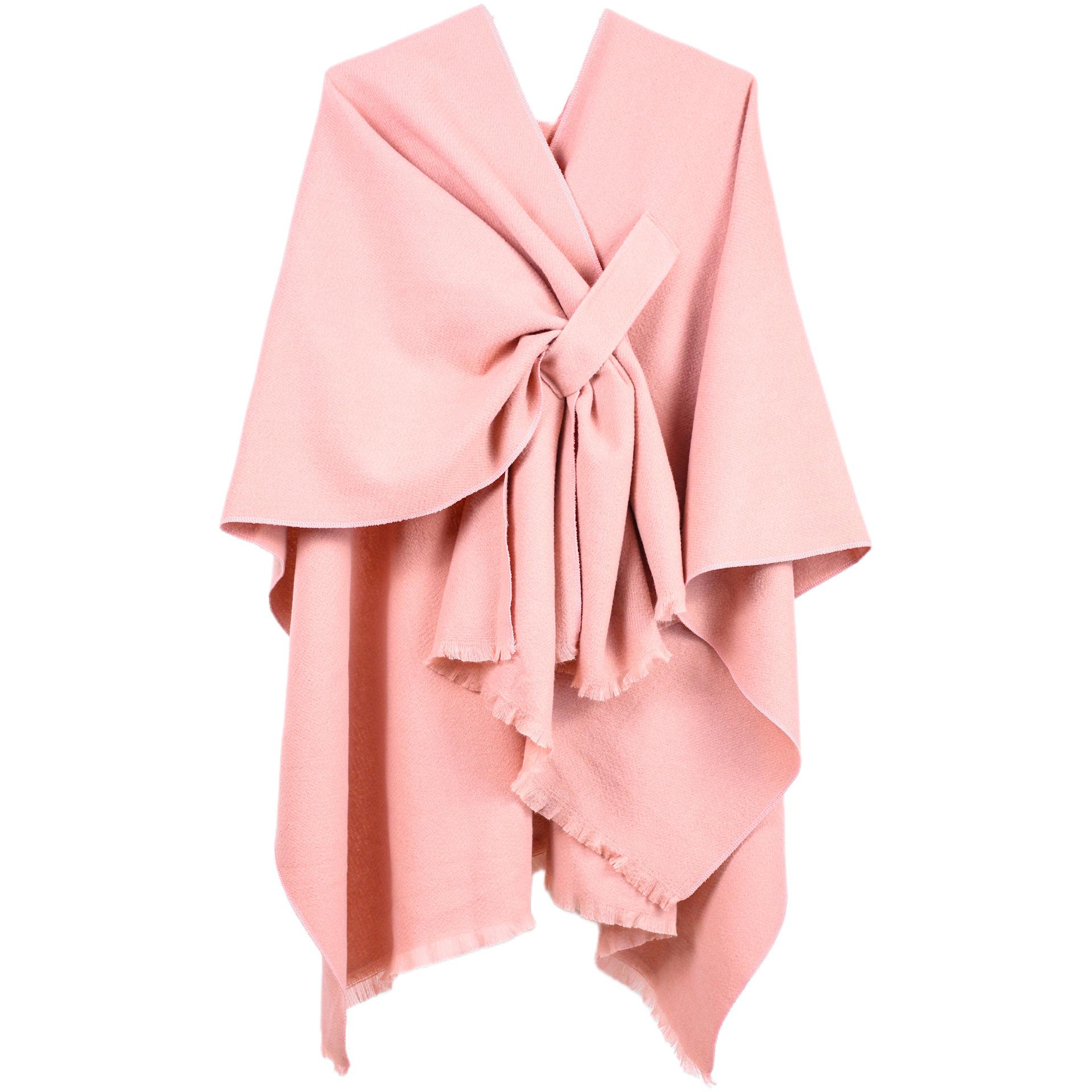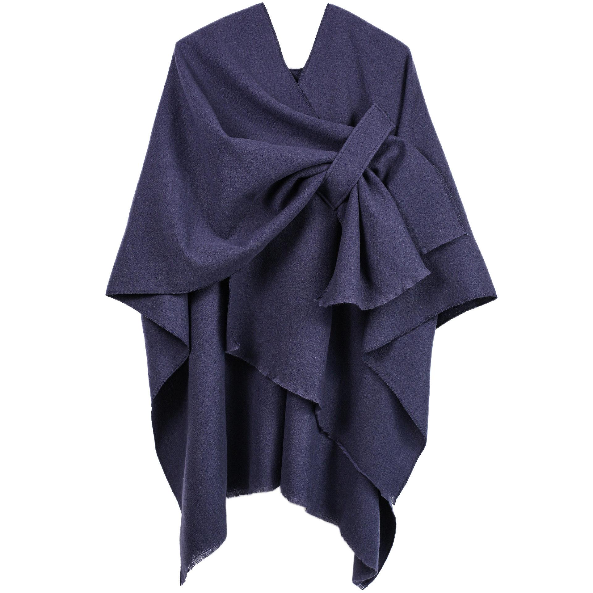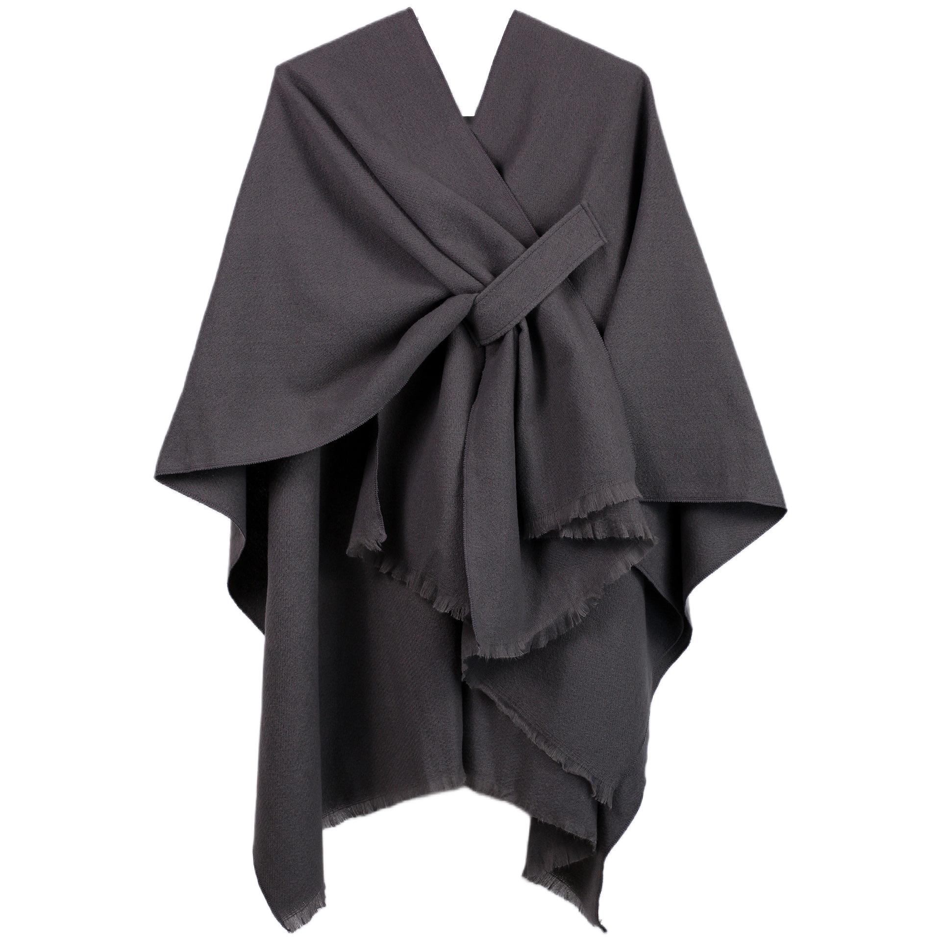 Cárdigan Nuevo para Mujer 2025 con Chal Dividido con Barra Comercio Transfronterizo Europeo y Americano Capa Monocromática Chal Aumentado de Color Sólido