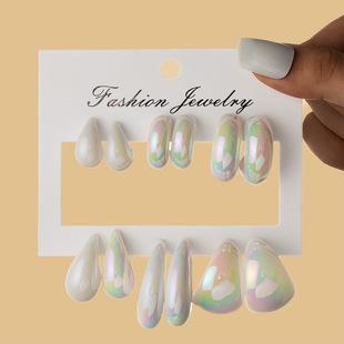 Nuevos aretes de moda de Amazon con personalidad exagerada, irregulares, de ABS con imitación de perlas, en forma de lágrima, de varias piezas para mujer